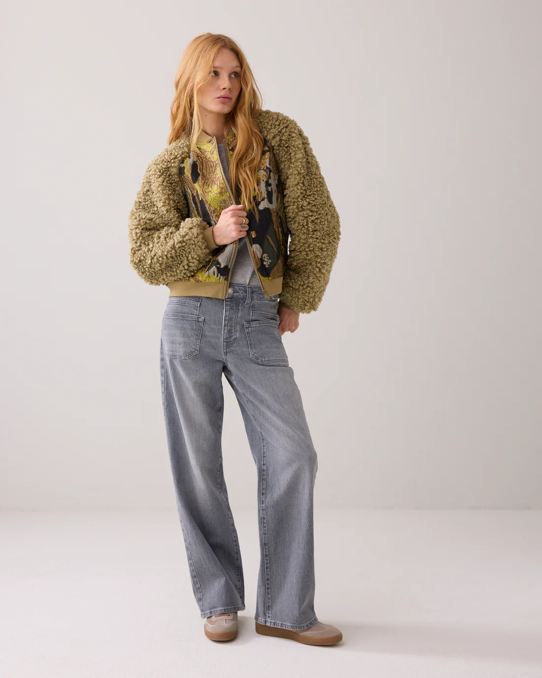 1s1204-12298 - Jacket bomber Jacuard teddy mix - GreenLentil