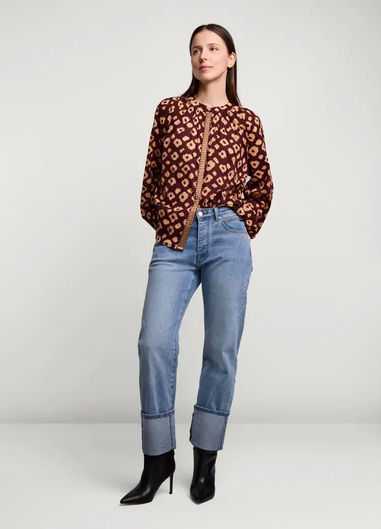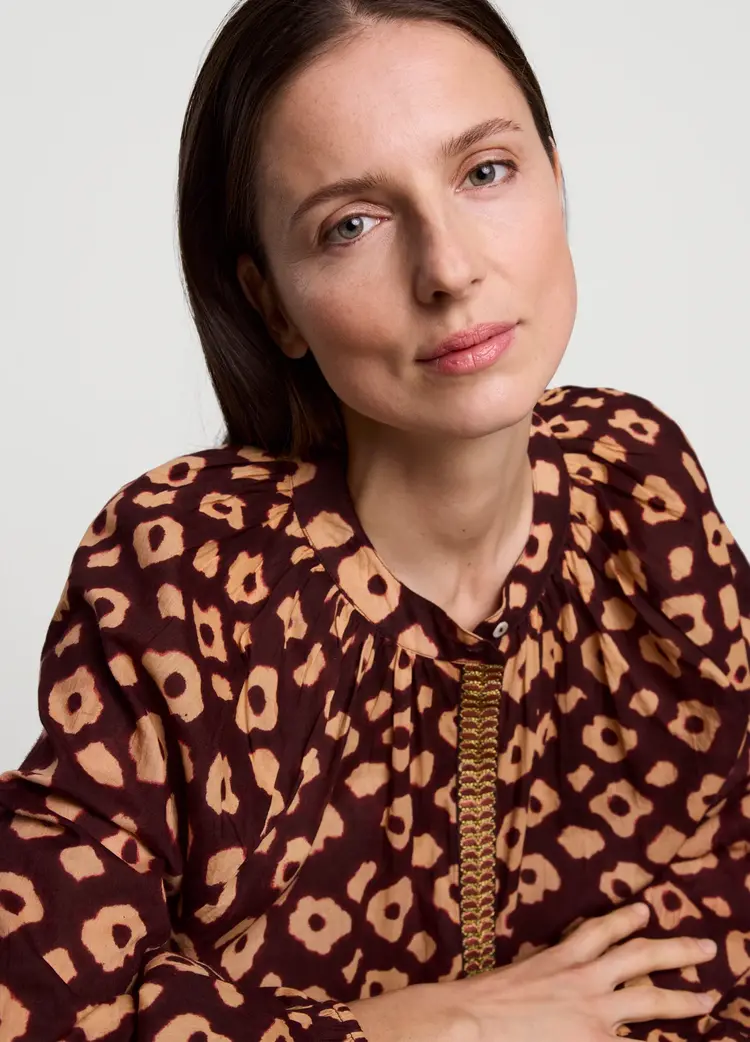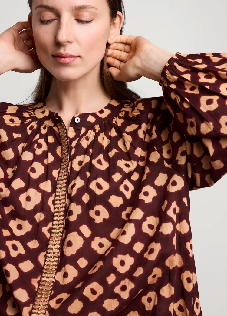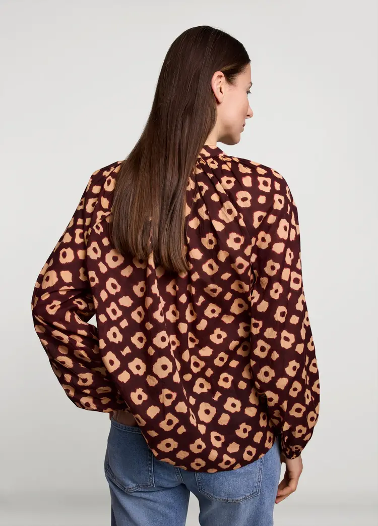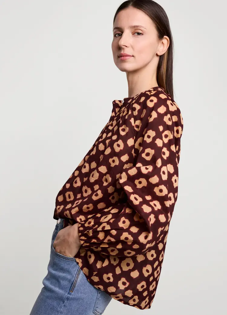 • Ruimvallende blouse van het merk Summum in een zachte katoenen stof met bloemenprint. De blouse heeft een ronde hals met split, knoopsluiting en ballonmouwen.