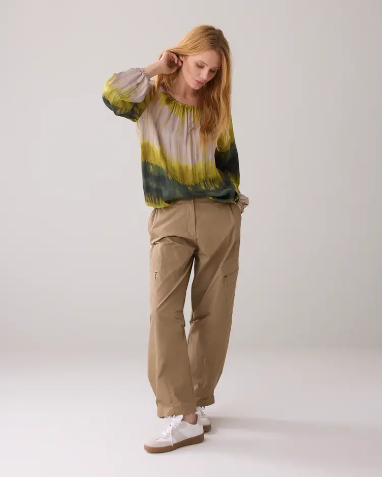 Iedere top is uniek door de willekeurige plaatsing van de print. Andere eigenschappen van deze top van het merk Summum zijn: