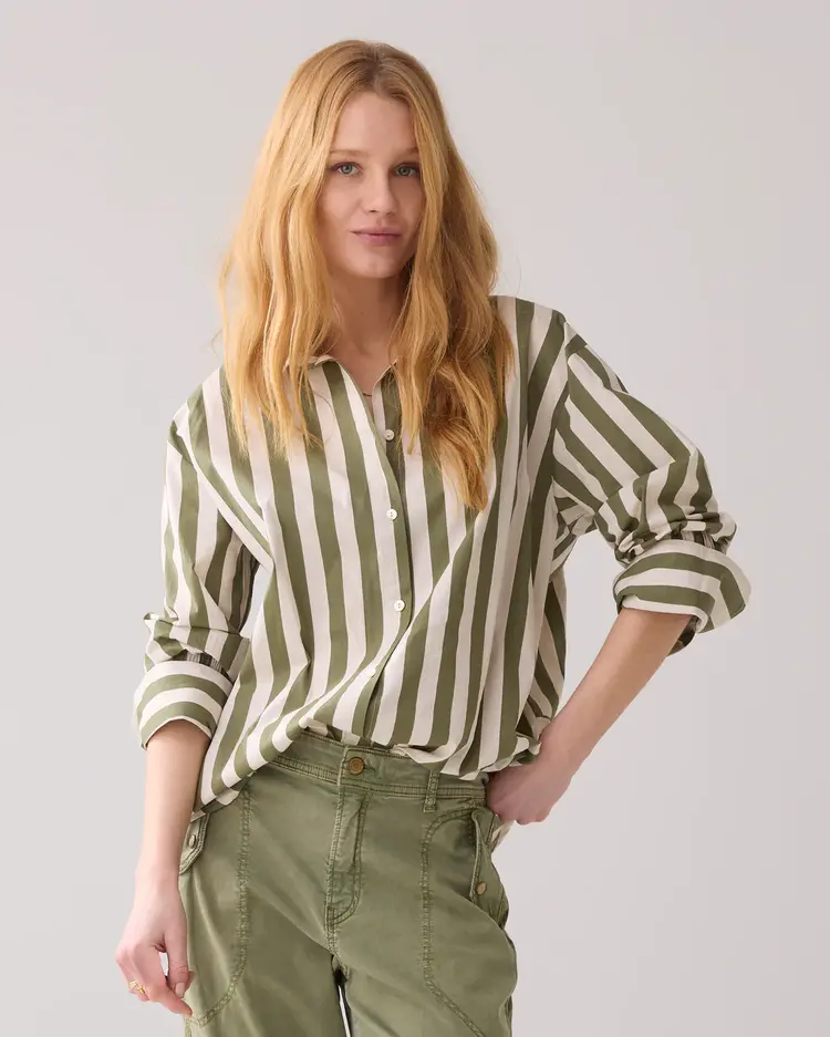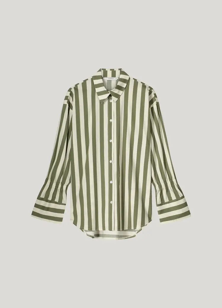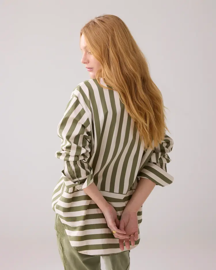 De Summum blouse heeft een verlaagde mouwaanzet voor een casual look. De achterkant is met een deelnaad uitgevoerd in horizontaal en verticaal streeppatroon.