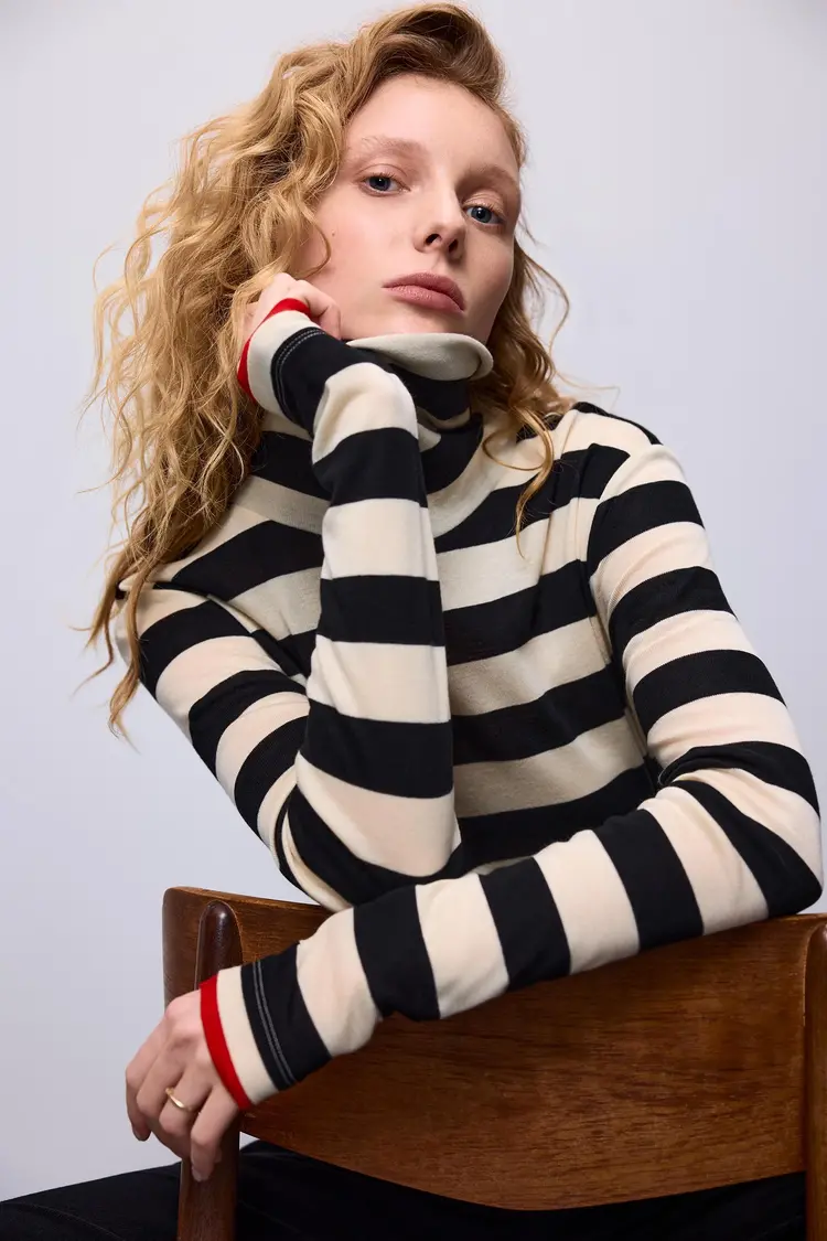 Het model op de foto's is 177 cm lang en draagt maat m.