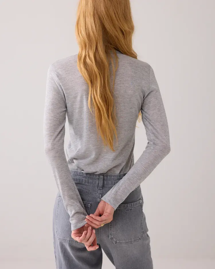 • Deze fitted longsleeve van het merk summum is gemaakt van een Italiaanse, semi-transparante melange jersey met lurex voor een subtiele shimmer. Dit item, uitgevoerd in de basiskleur van de collectie, is een perfecte basic onder gilets, jasjes en vesten.