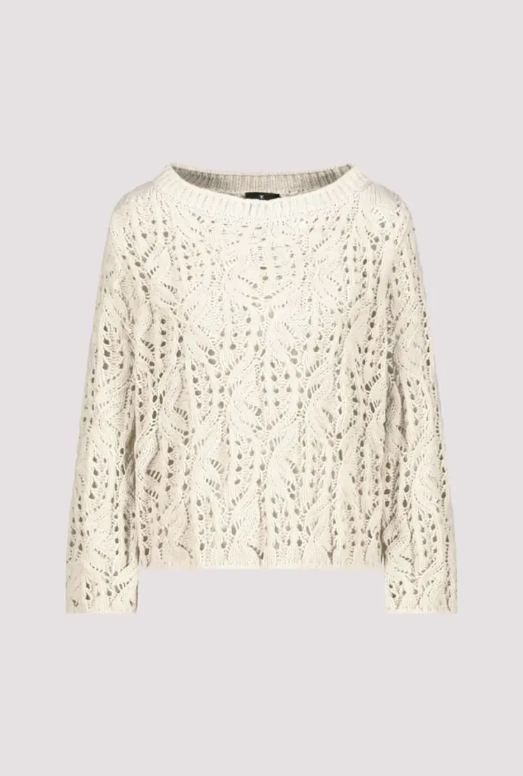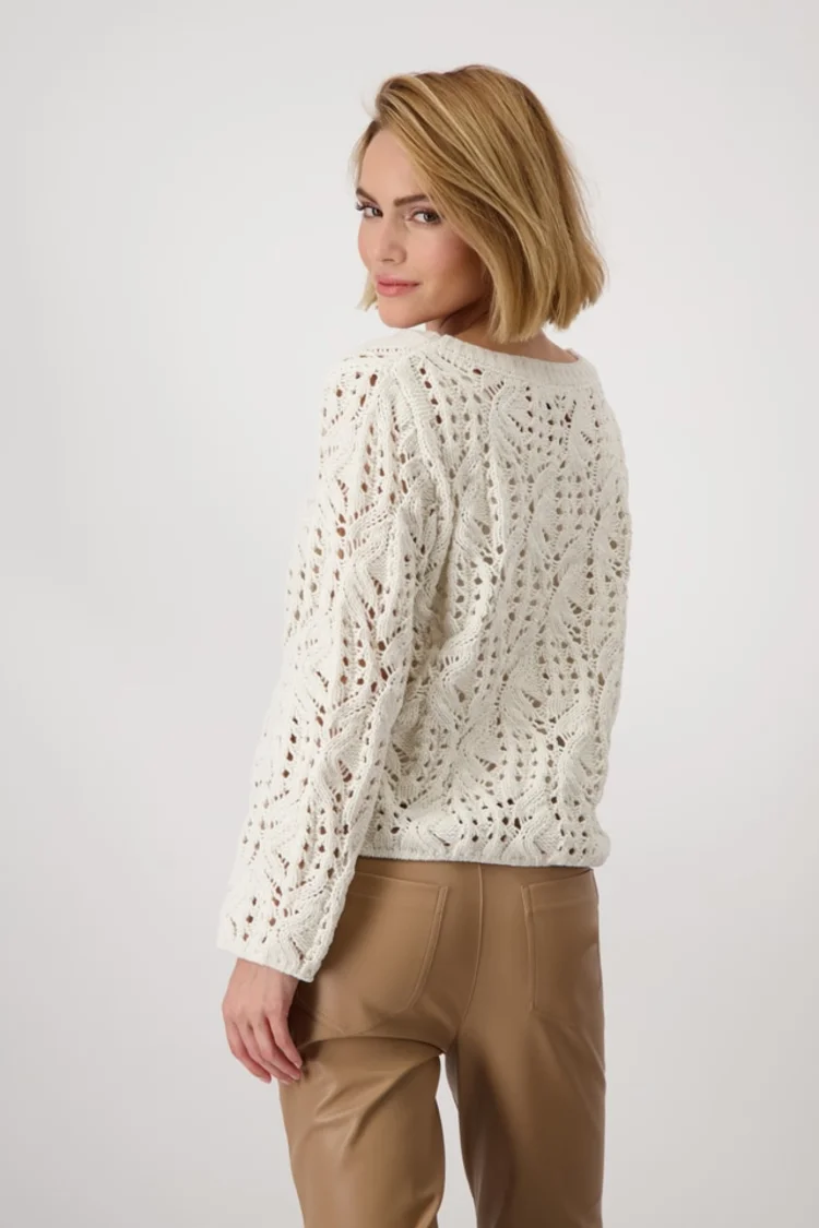 • Deze trendy trui van het merk Monari, gemaakt van zacht chenillegaren valt op door het elegante ajourpatroon en de klassieke boothals.