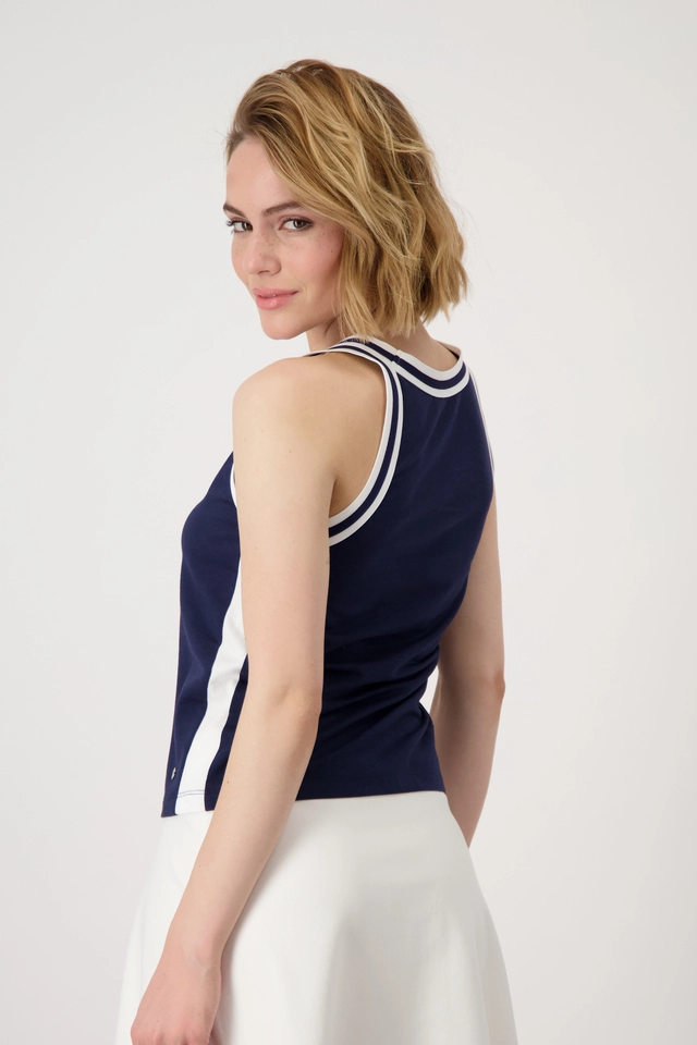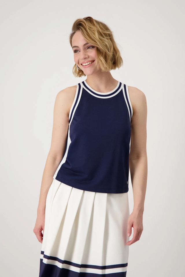 Deze top van het merk Monari is gemaakt van:Materiaal 1: 50% katoen;Materiaal 2: 50% modal.