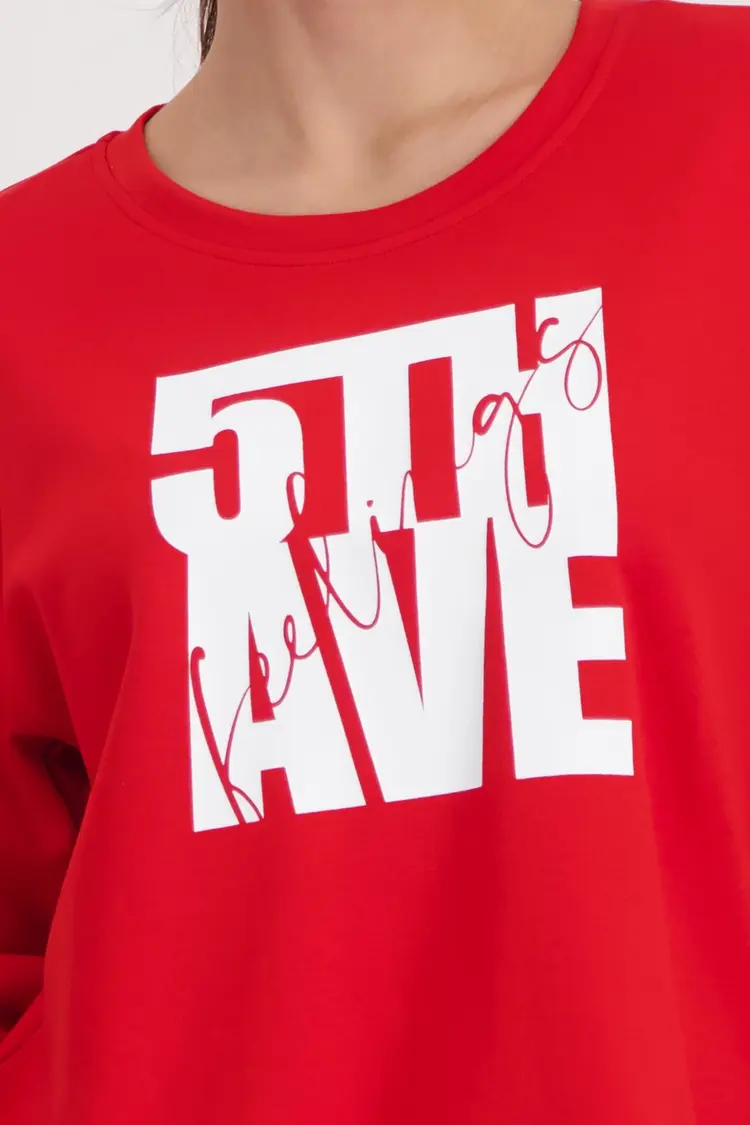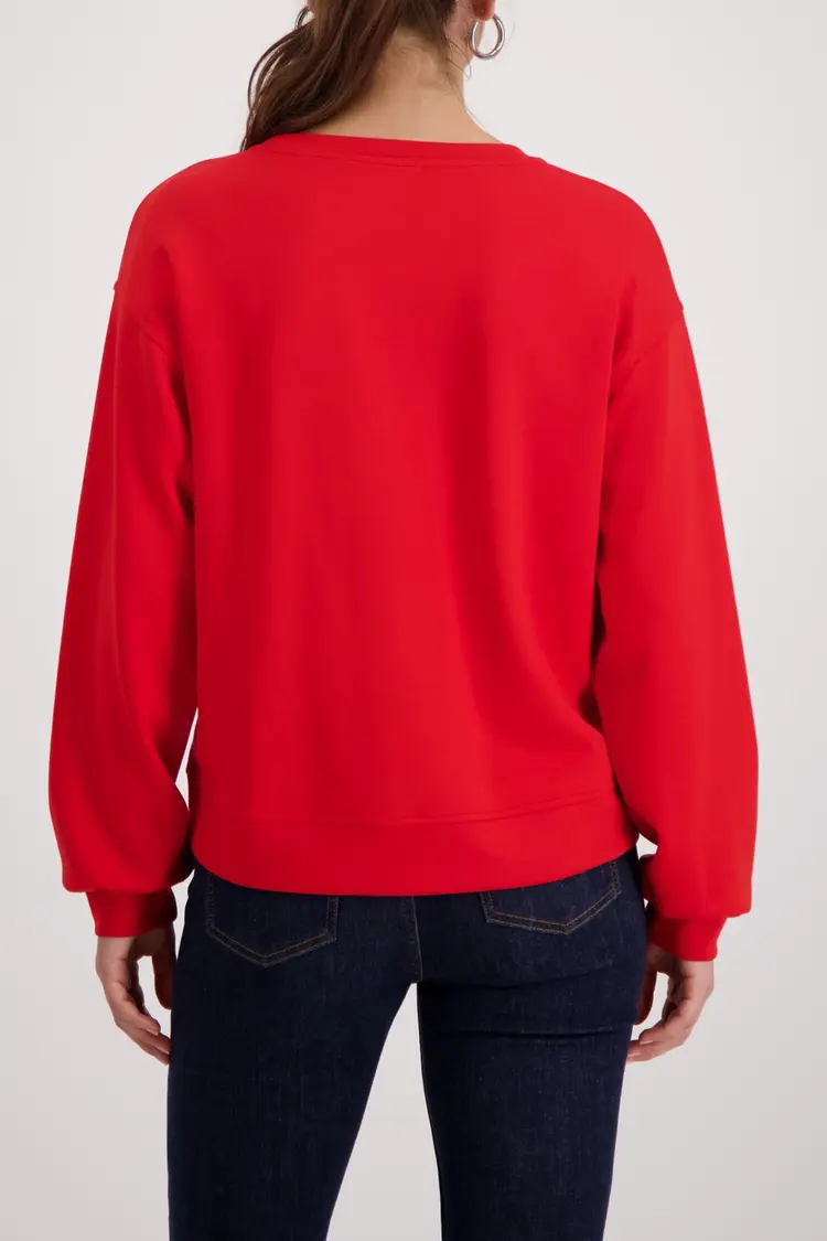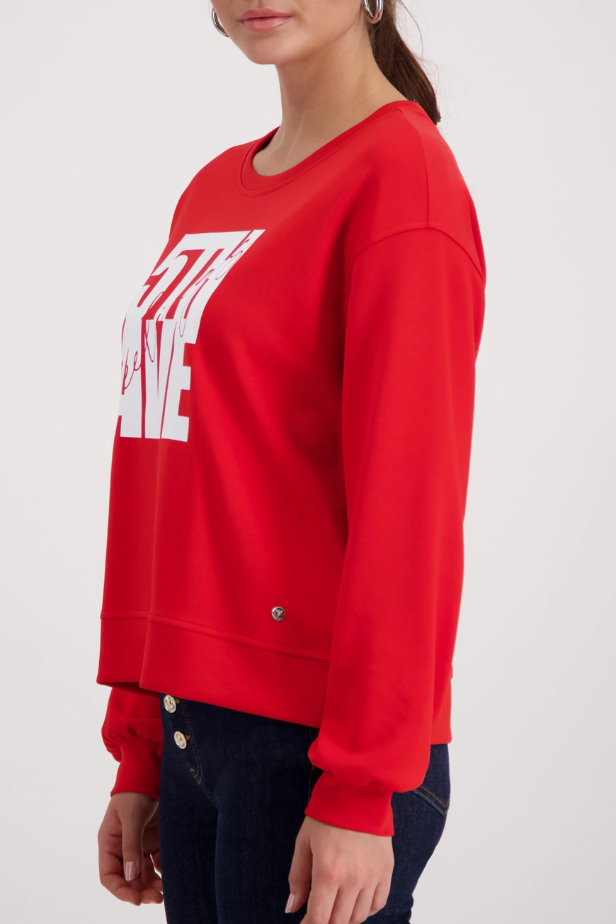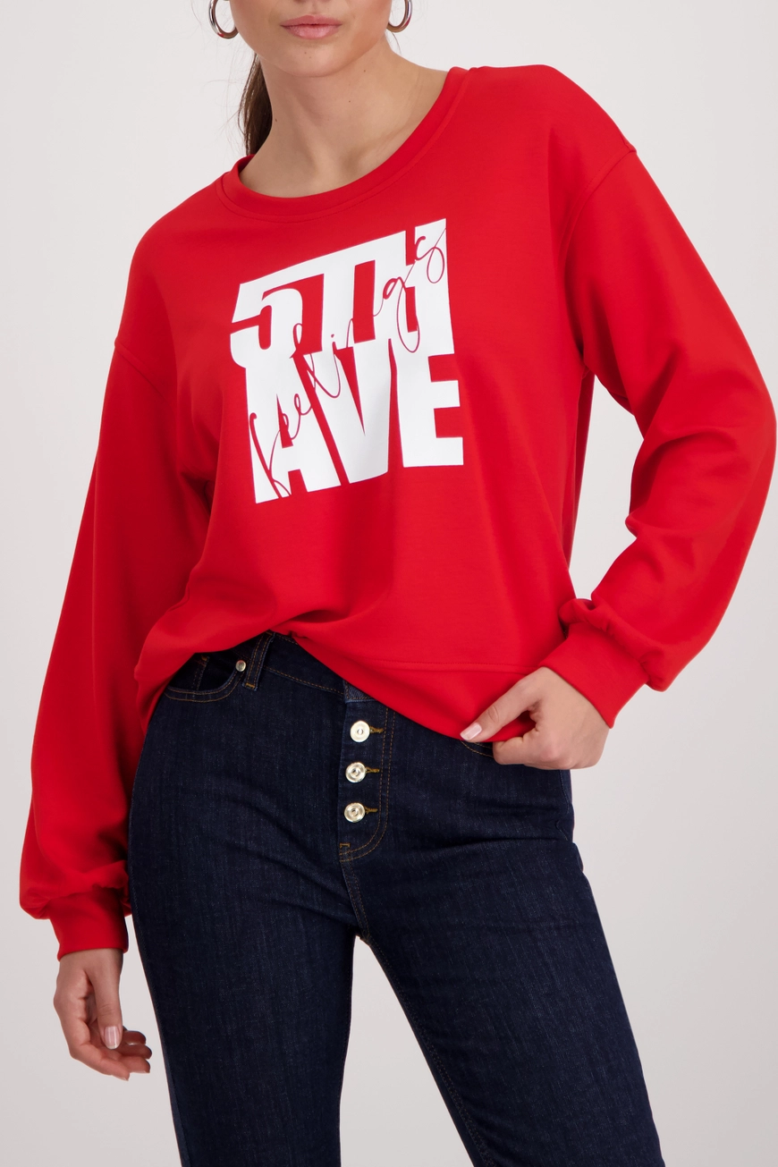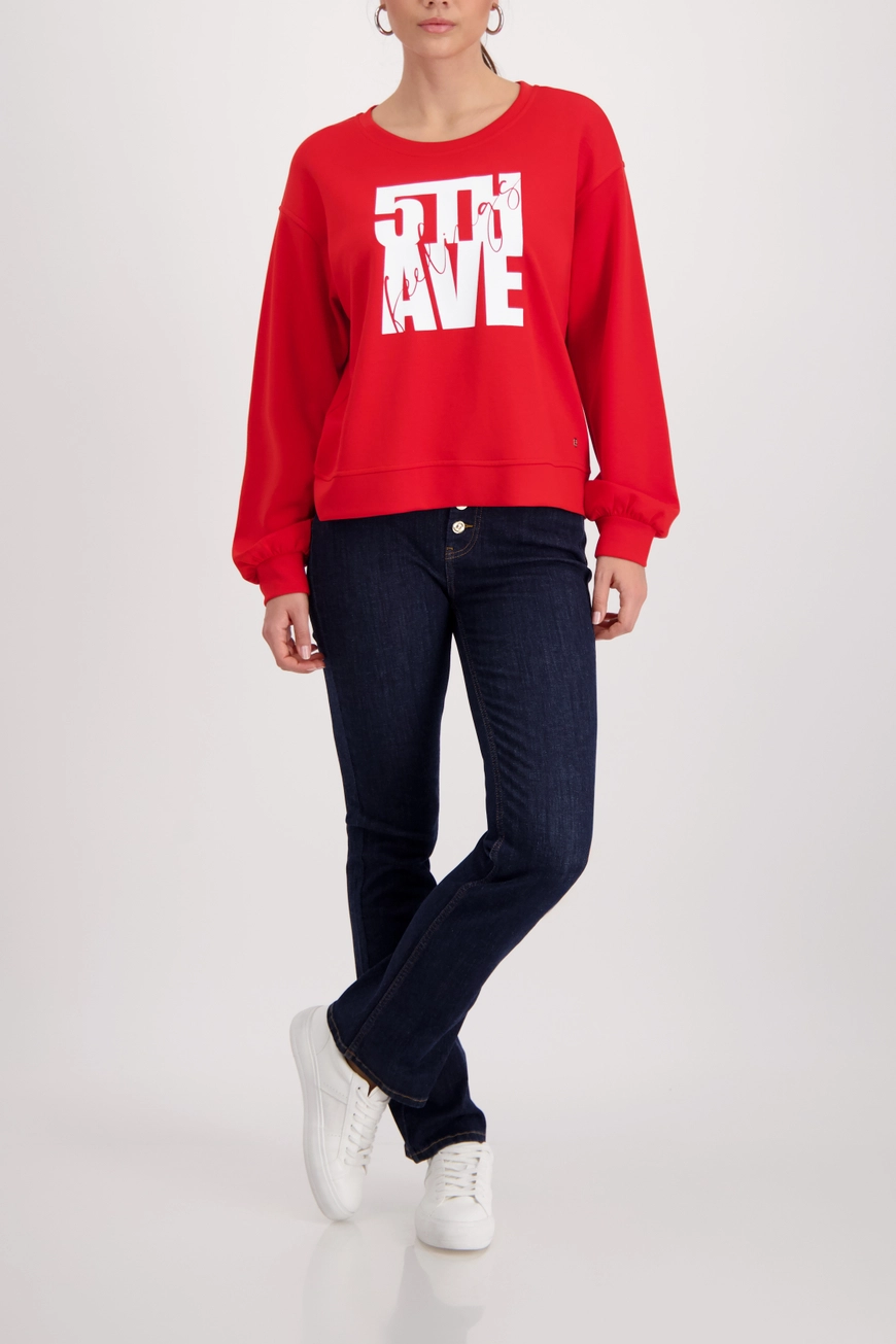 • Elegante sweatshirt van het merk Monari van soepelvallende viscose met charmante ‘5th Avenue’-opdruk – de perfecte metgezel.