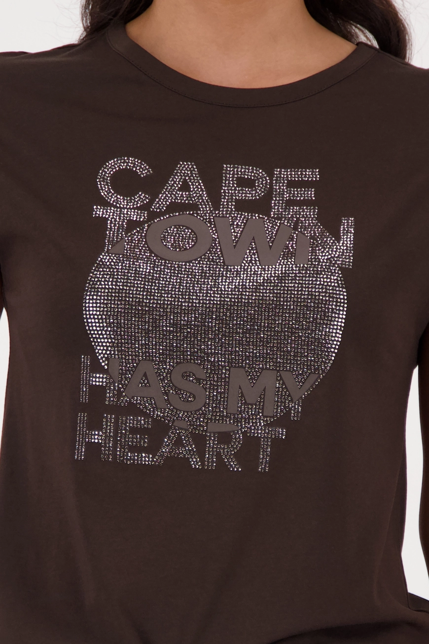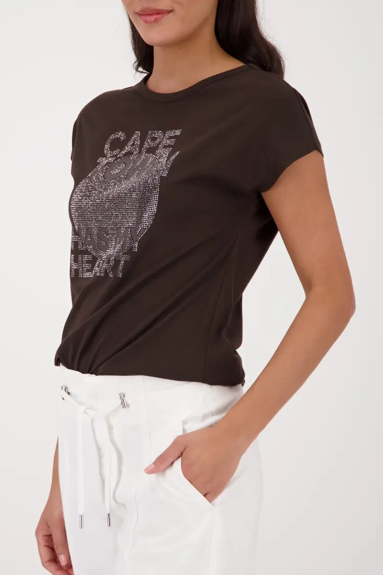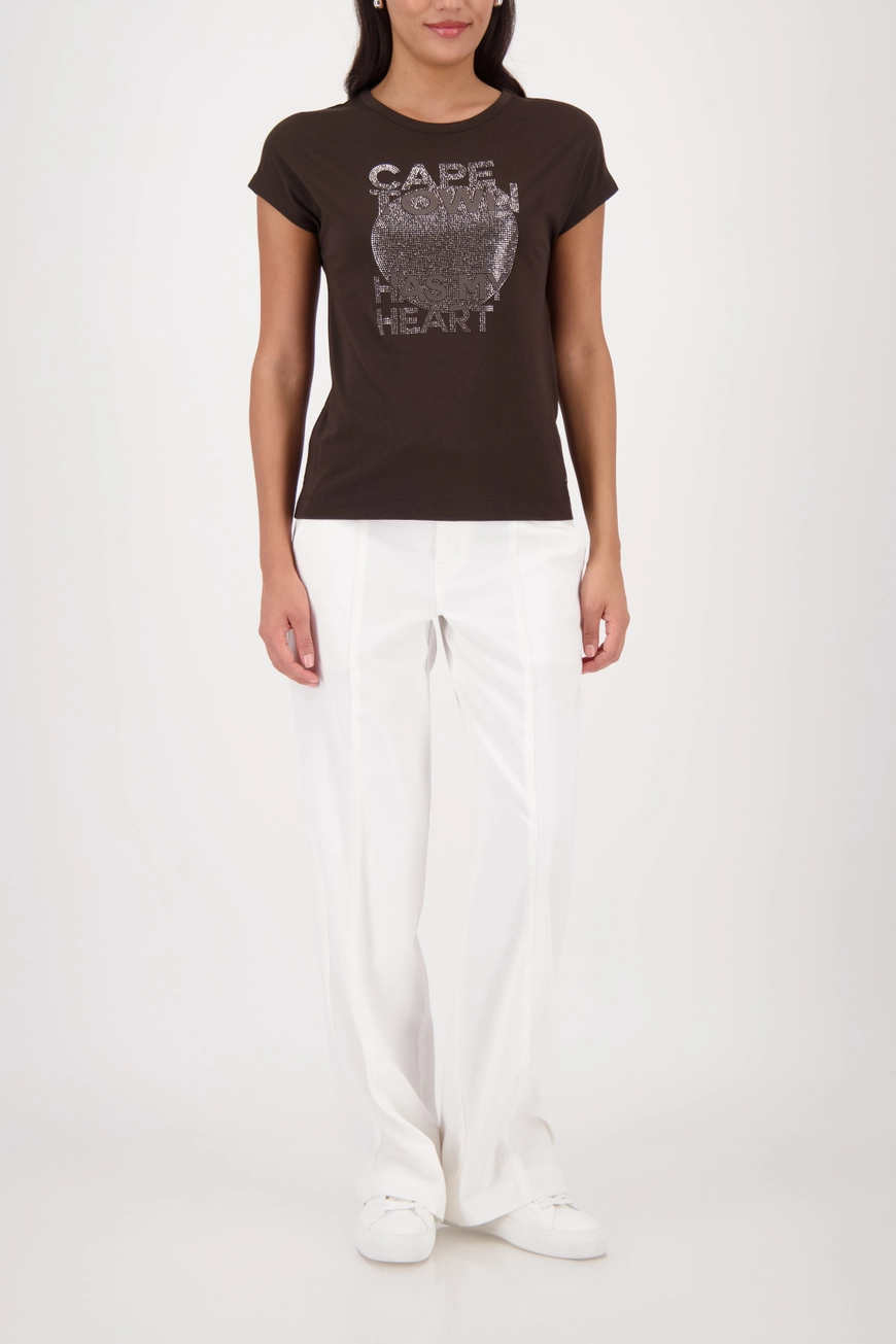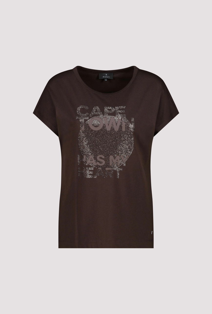 • Dit stijlvolle T-shirt van het merk Monari, gemaakt van hoogwaardig katoen met modal valt op door de strass-steentjes en de poëtische tekst ‘Cape Town has my heart’.