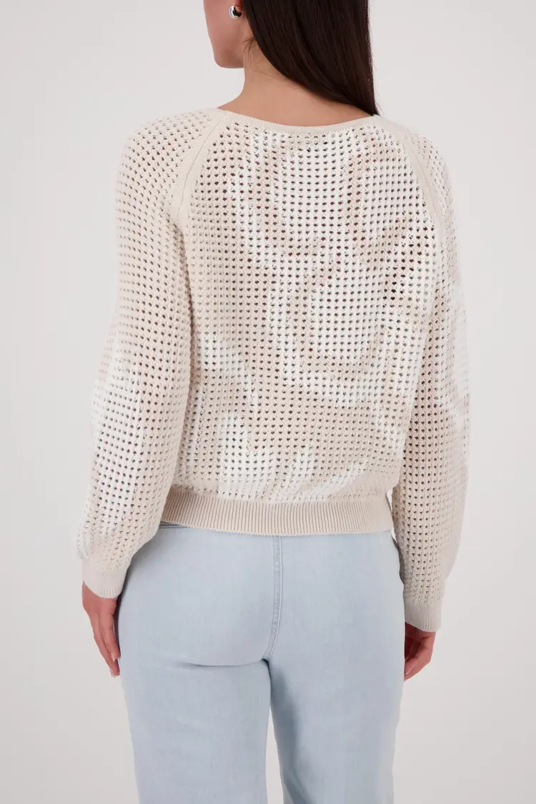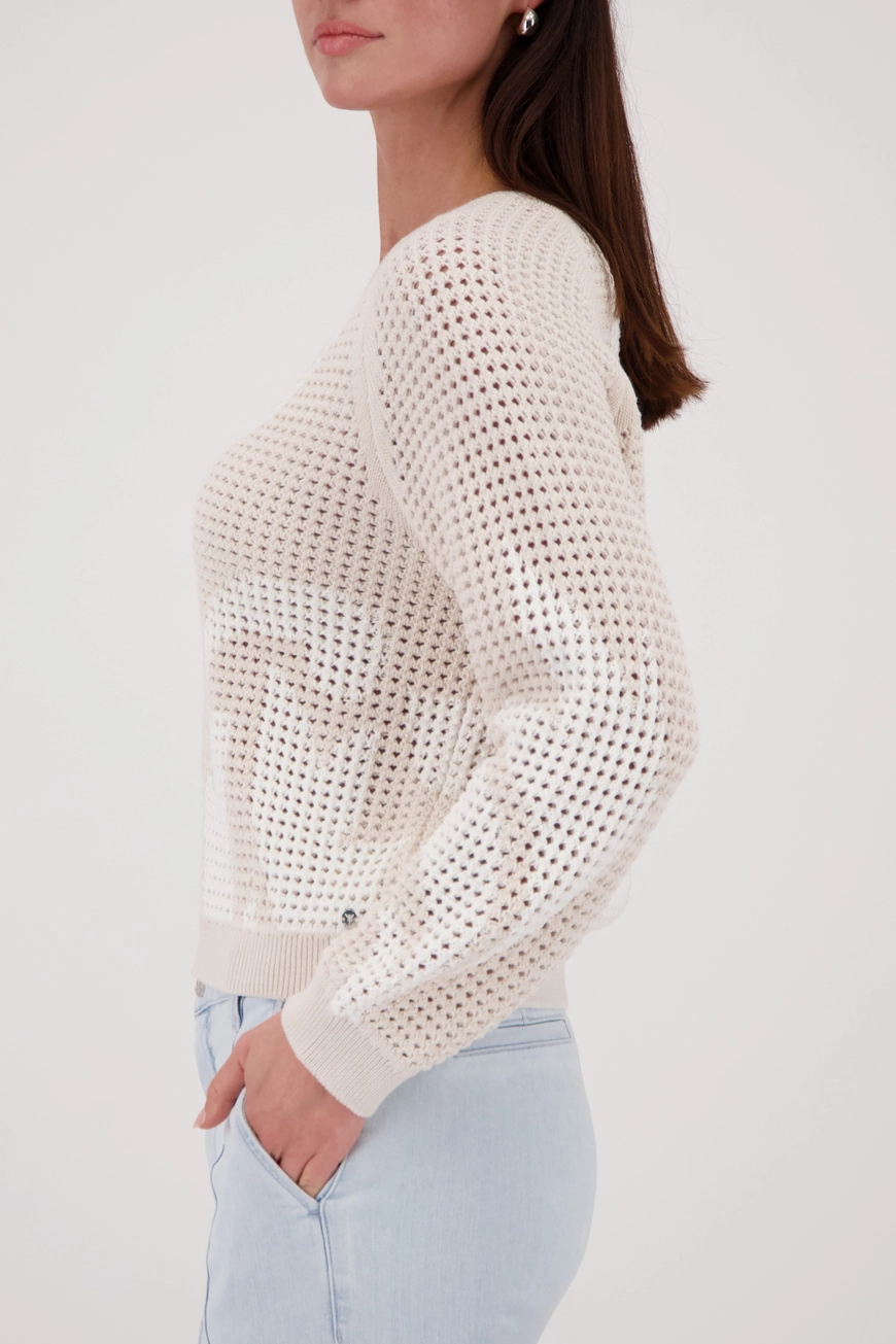 • Elegante ajour trui van het merk Monari, van 100% katoen met jacquard, pailletten en geribde mouwzoom – voor een moderne, stijlvolle look.