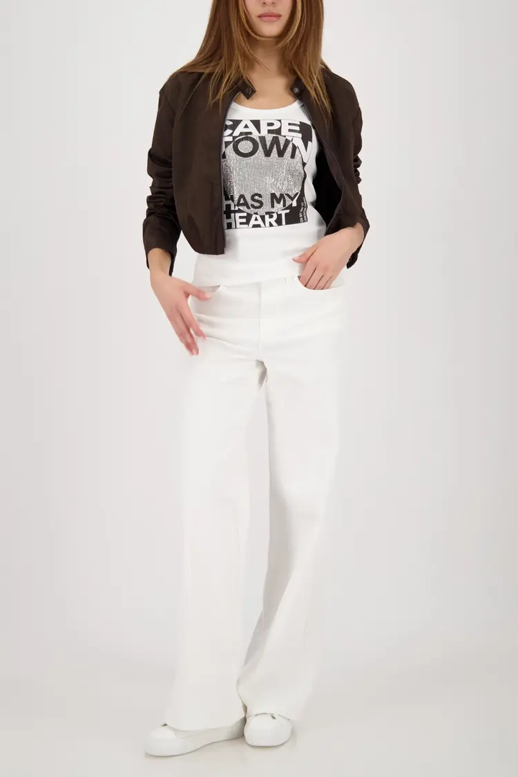 Het model op de foto's is 1.78 m lang en draagt maat 36. De lengte van maat 38 bedraagt 58 cm.