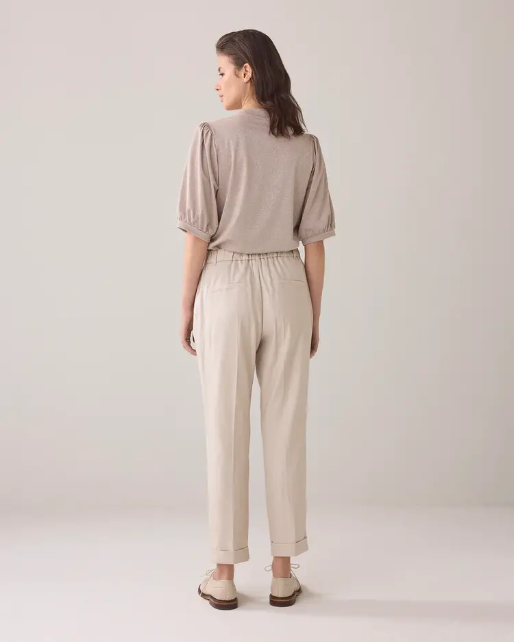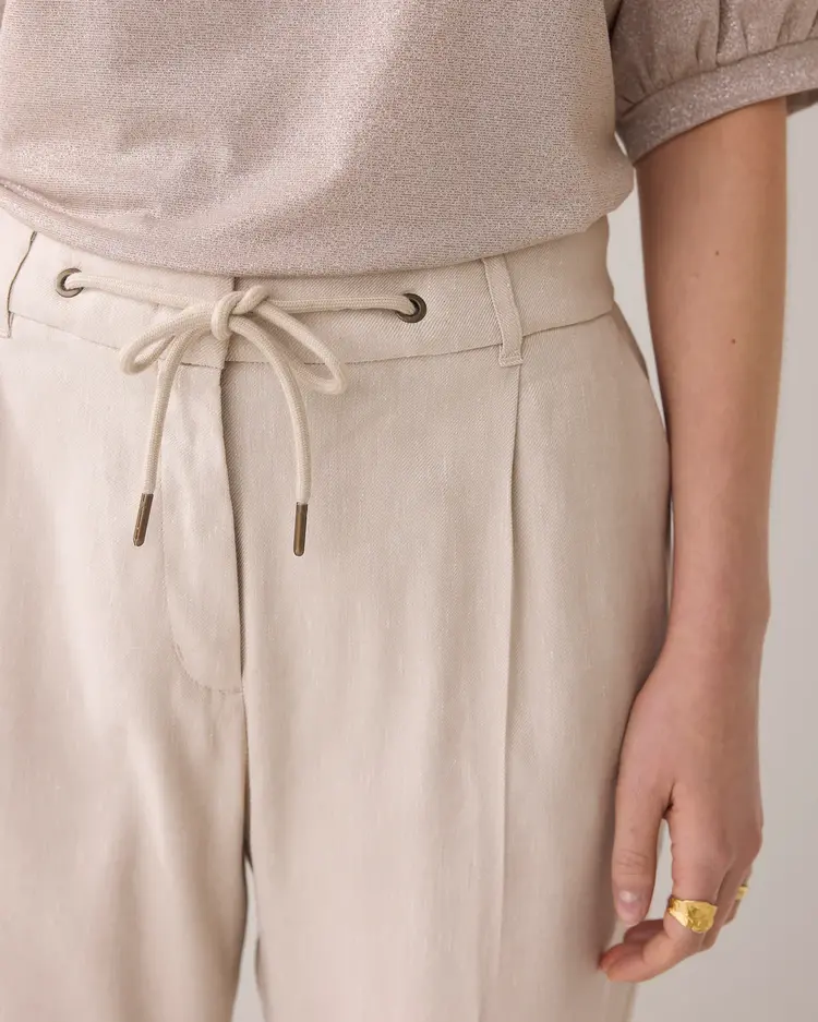 Deze broek van het merk Summum is gemaakt van:Materiaal 1: 50% Linnen;Materiaal 2: 31% polyester;Materiaal 3: 17% viscose;Materiaal 4: 2% elastaan.