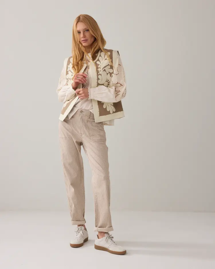 4s2949-12432 - Tapered pant Cotton stripe twill - Khaki