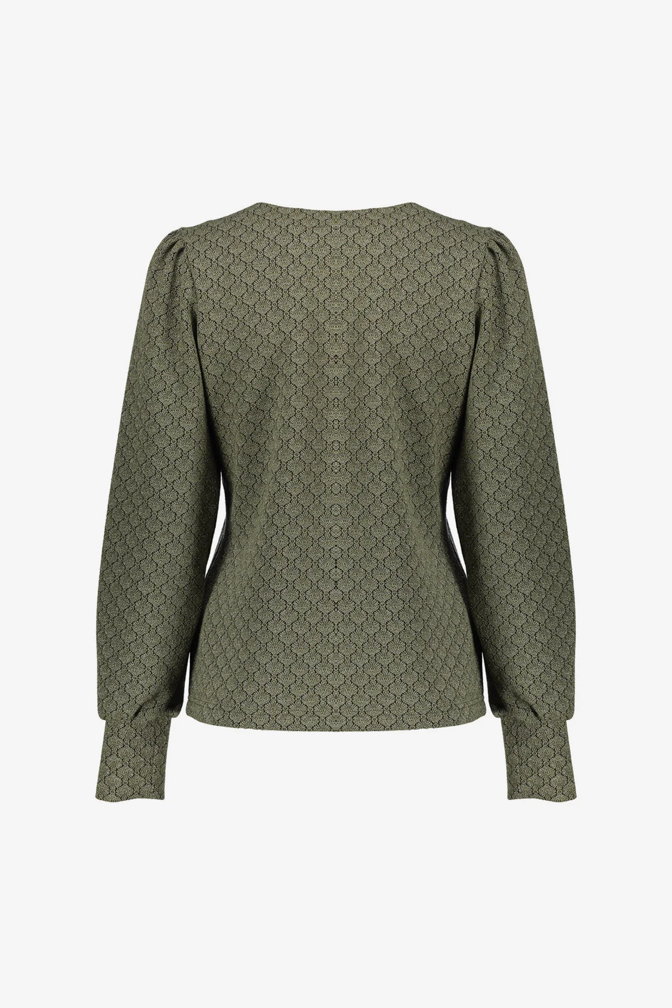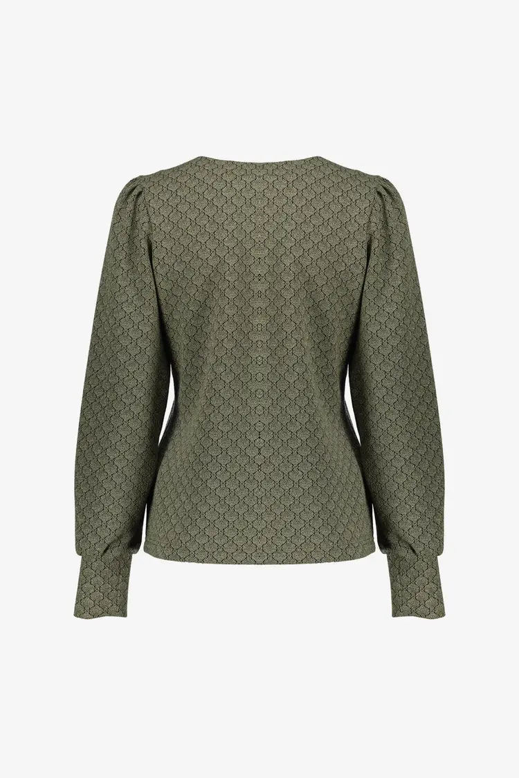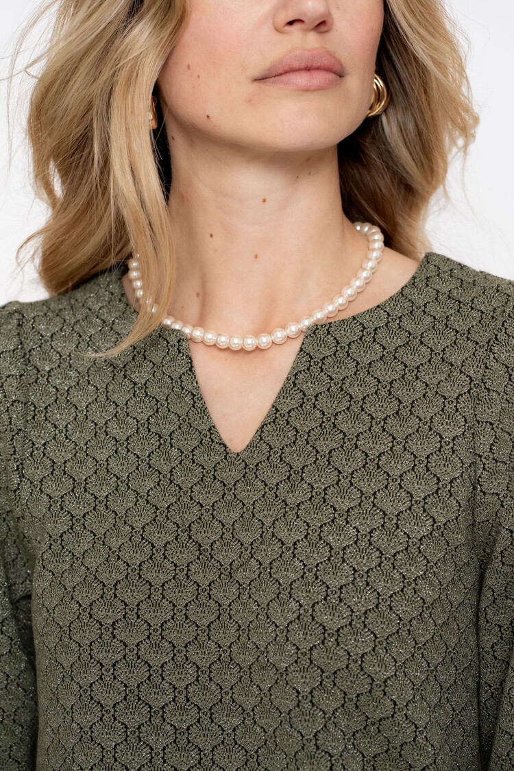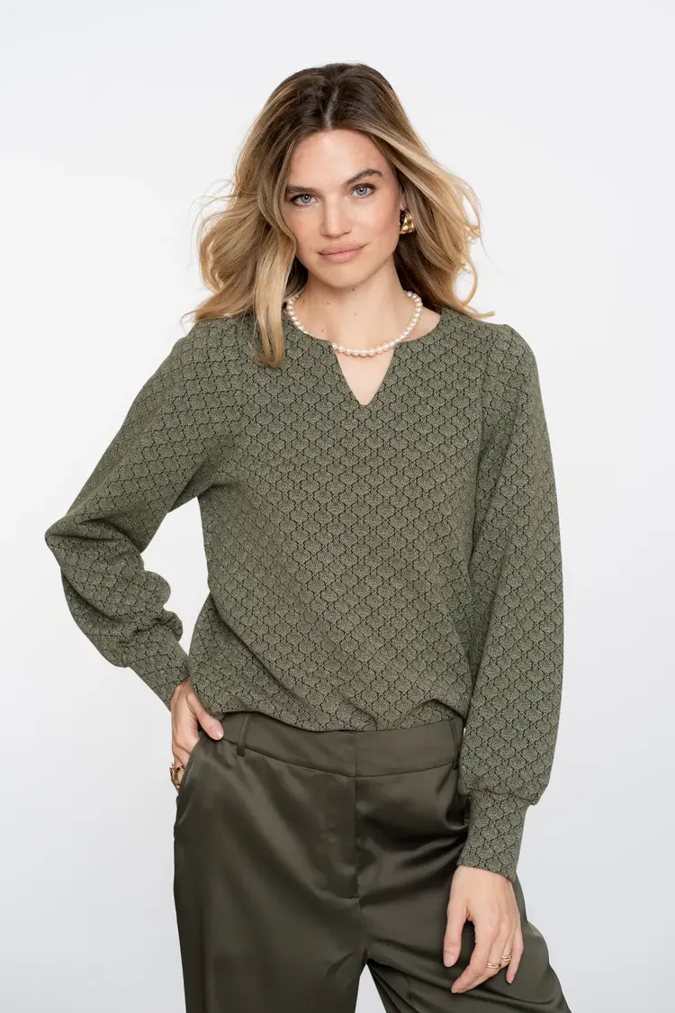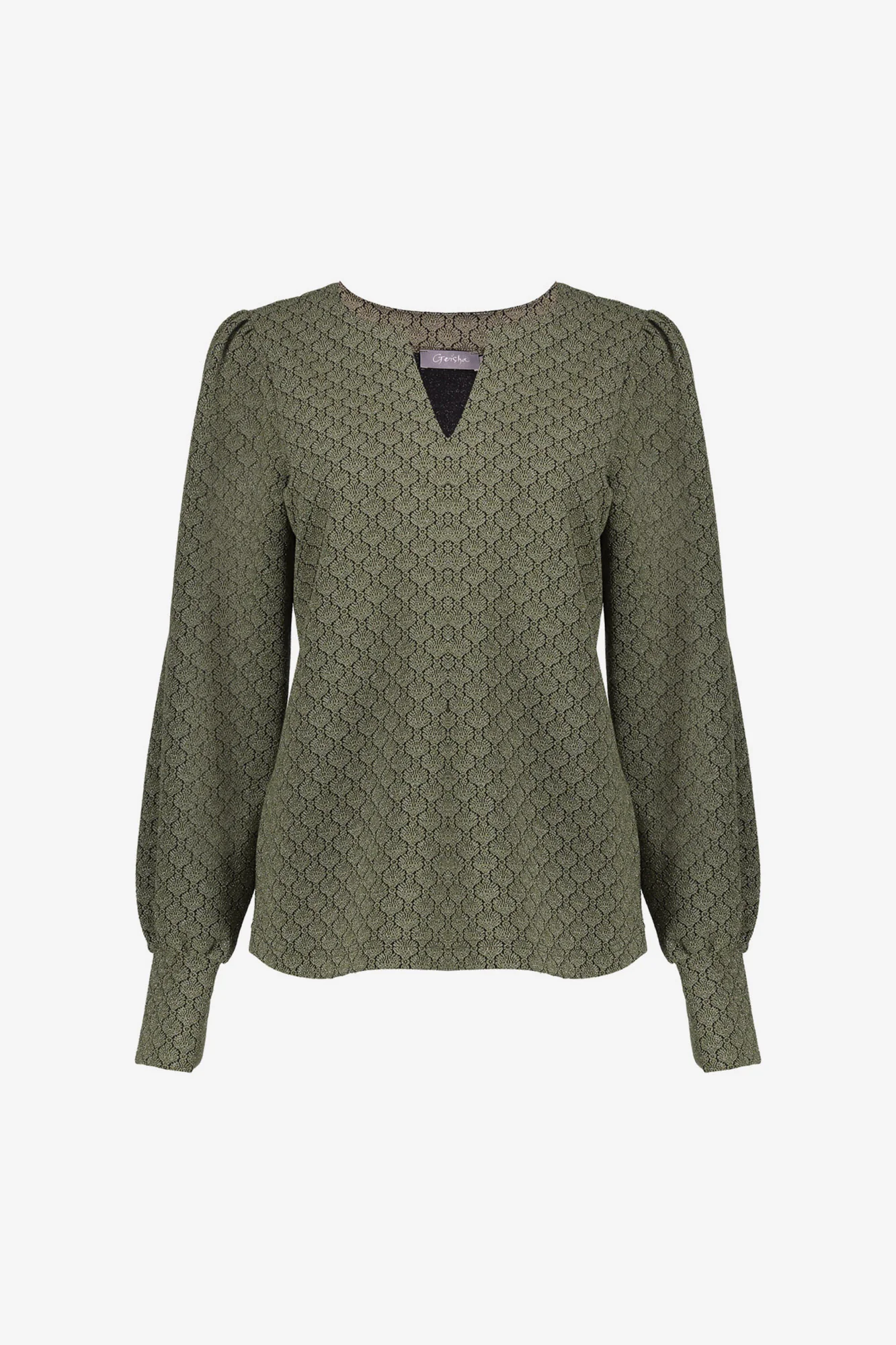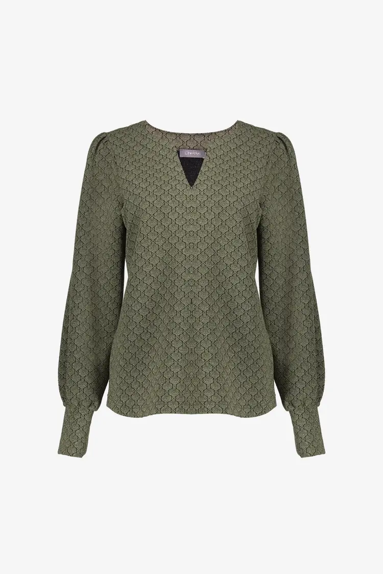 Dit shirt van het merk Geisha is gemaakt van:Materiaal 1: 60% polyester;Materiaal 2: 27% viscose;Materiaal 3: 11% lurex;Materiaal 4: 2% elastaan.