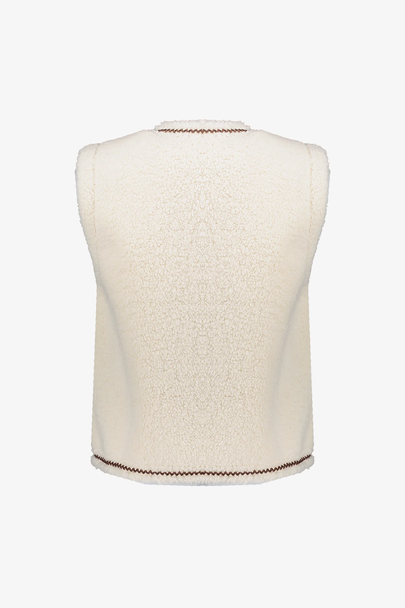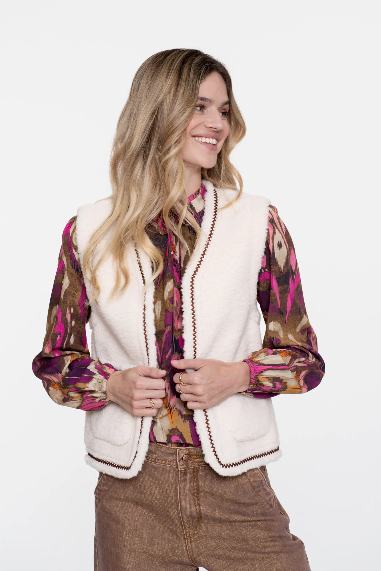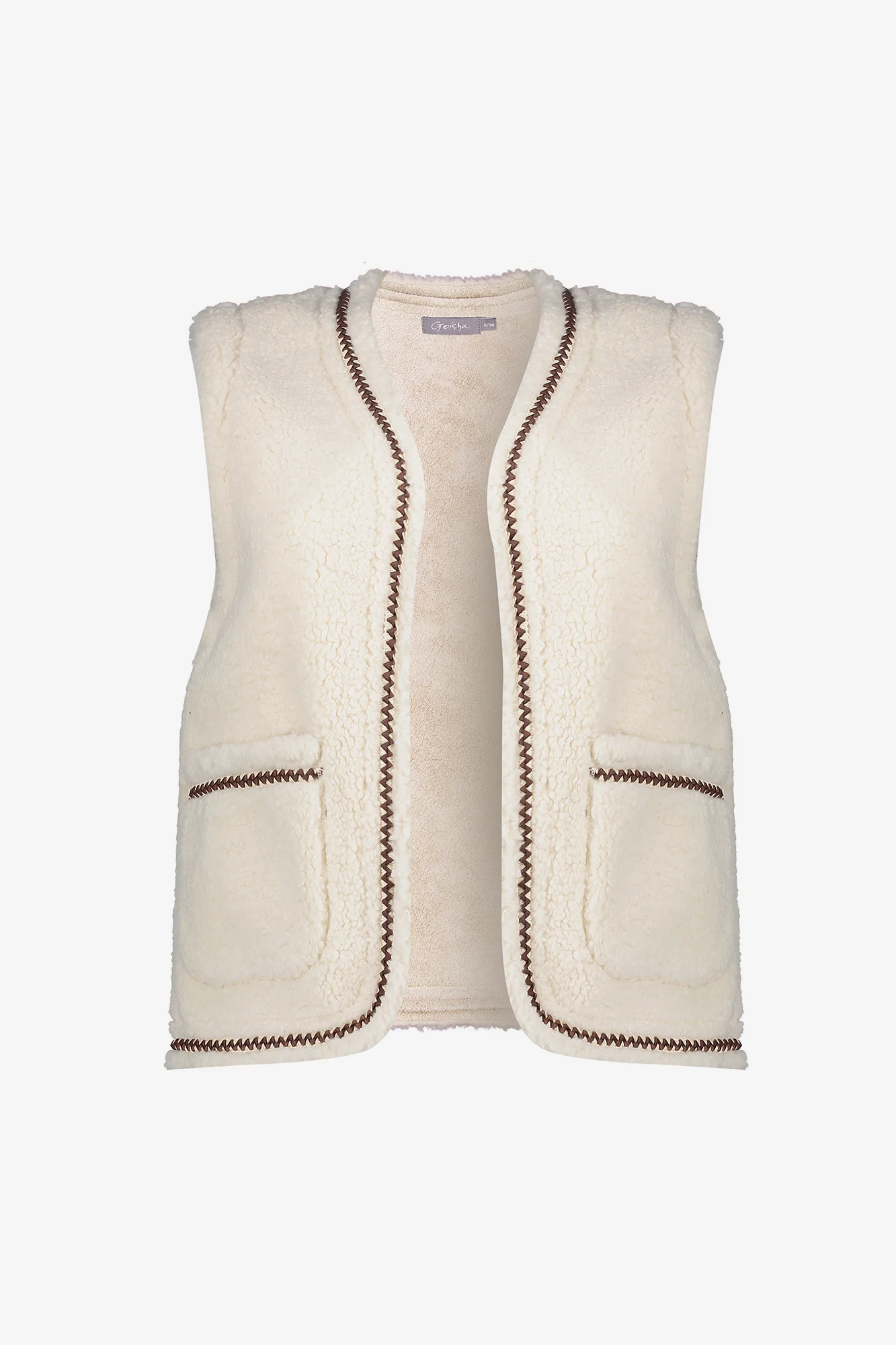 55541-19 - Gilet teddy embroidery - off-white/tape dark brown zigzag