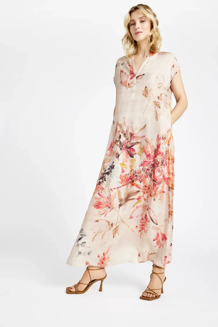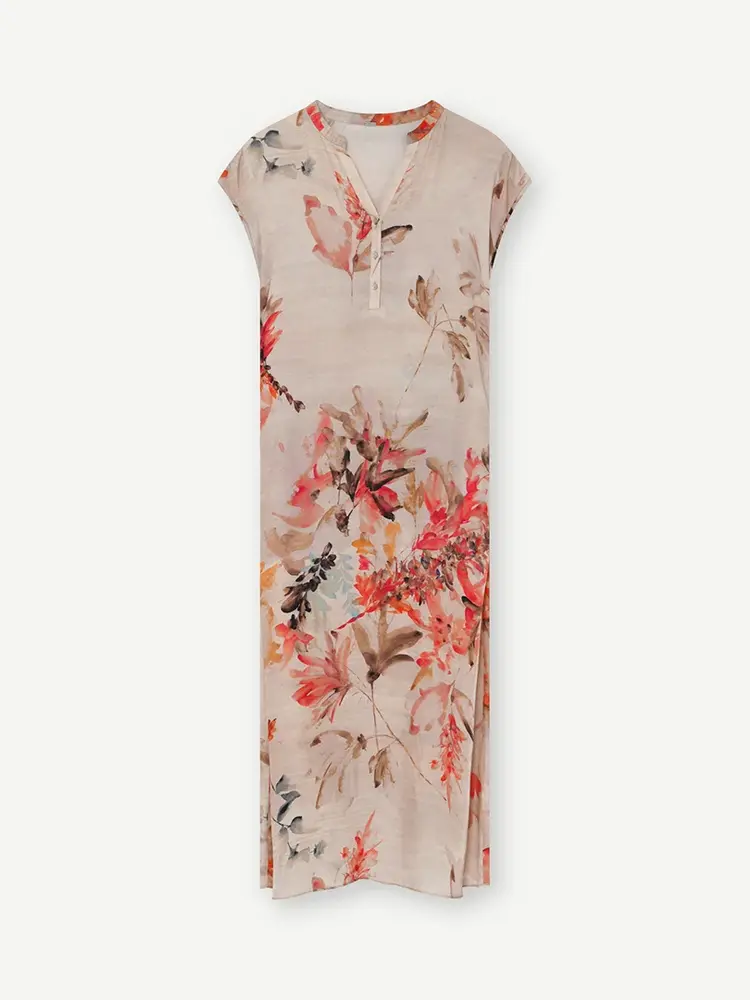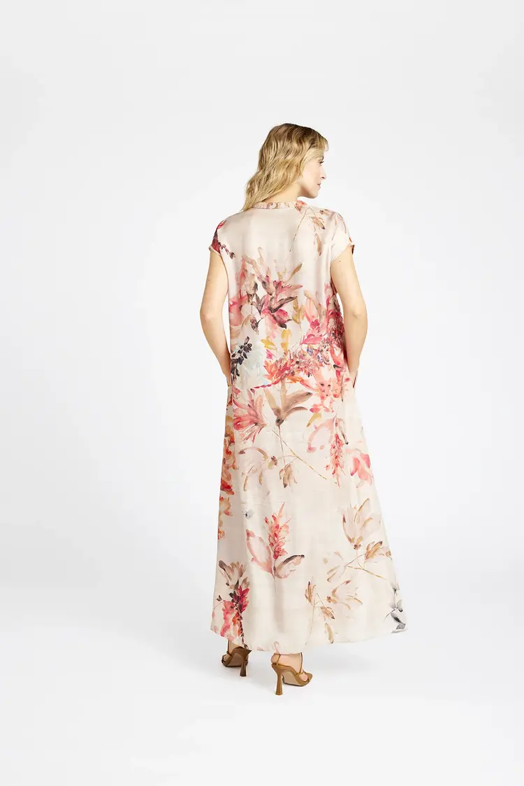 Deze jurk van het merk Gustav is gemaakt van:Materiaal 1: 60% Cupro;Materiaal 2: 40% Viscose;Materiaal 3 (voering): 96% Viscose;Materiaal 4 (voering): 4% Elastaan.