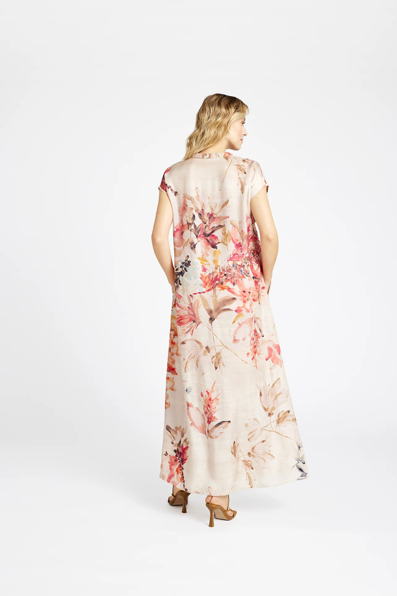 57524/7355 - Anika, long dress - Sand w. Rose Print
