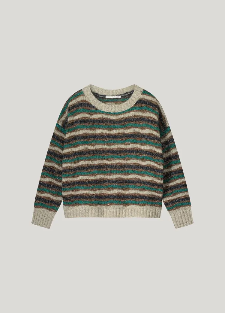 De trui is gemaakt van:Materiaal 1: 40% Polyamide;Materiaal 2: 32% Metal;Materiaal 3: 16% Acryl;Materiaal 4: 12% Alpaca wol.