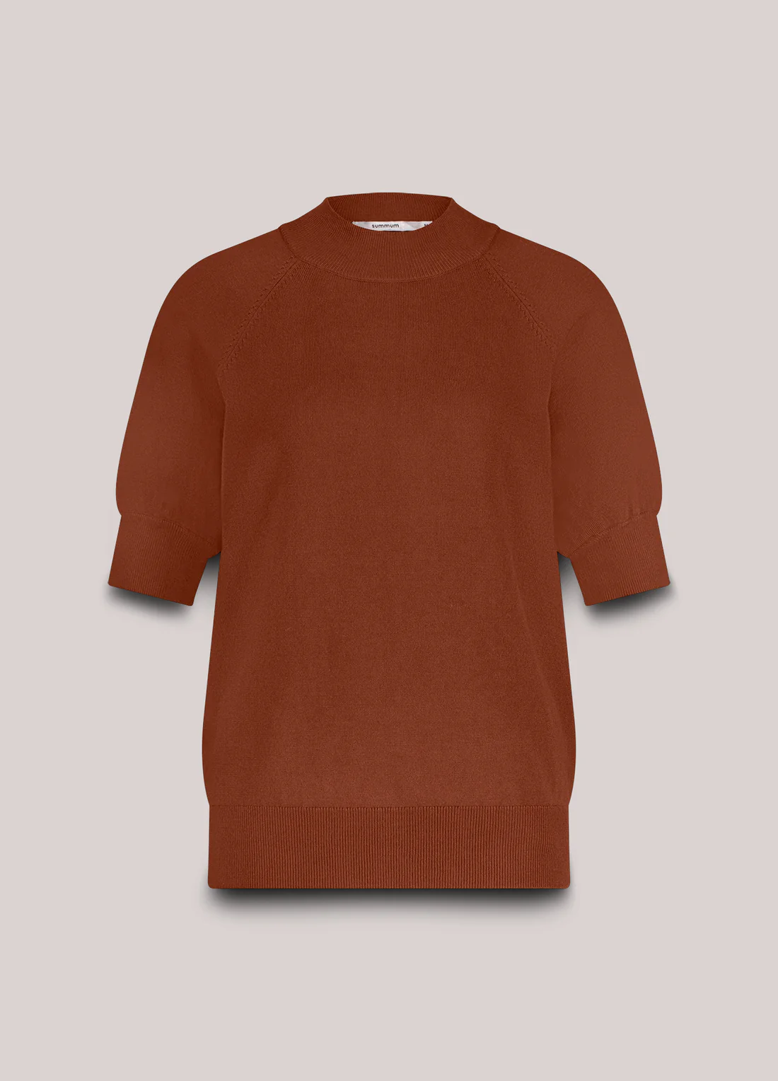 • Truitje van het merk Summum met opstaand boordje, korte raglanmouwen en een subtiel opengewerkt detail langs de naden. De trui heeft een regular fit en de mouwen hebben een licht pofeffect.