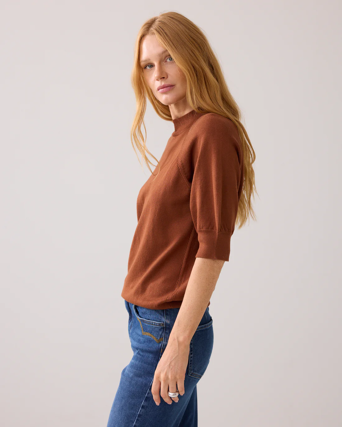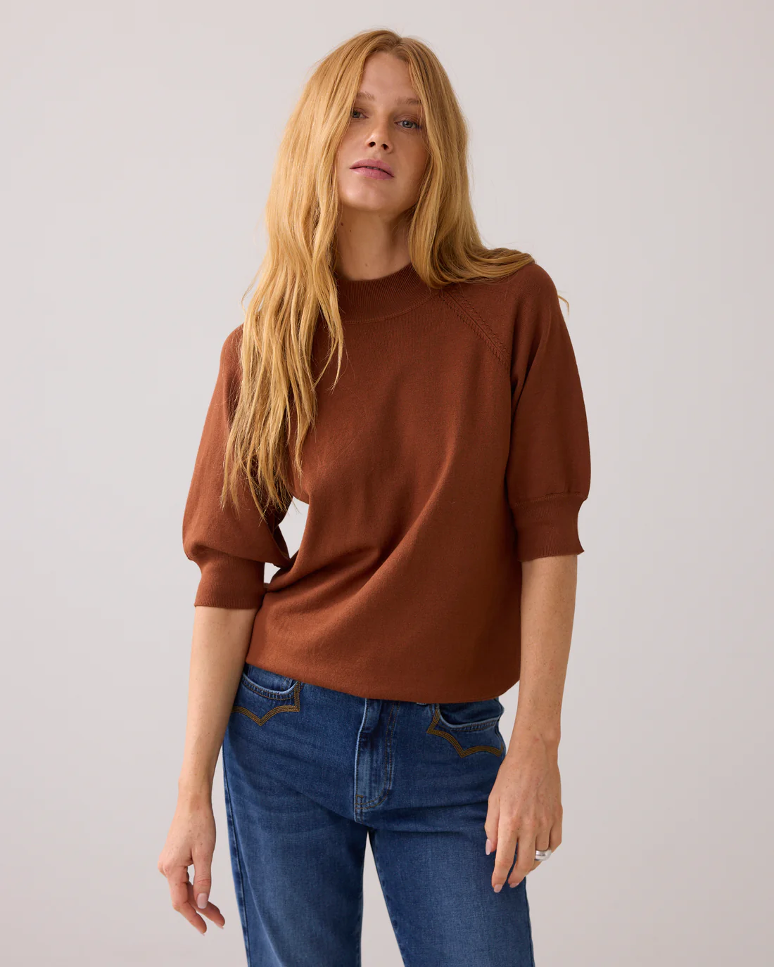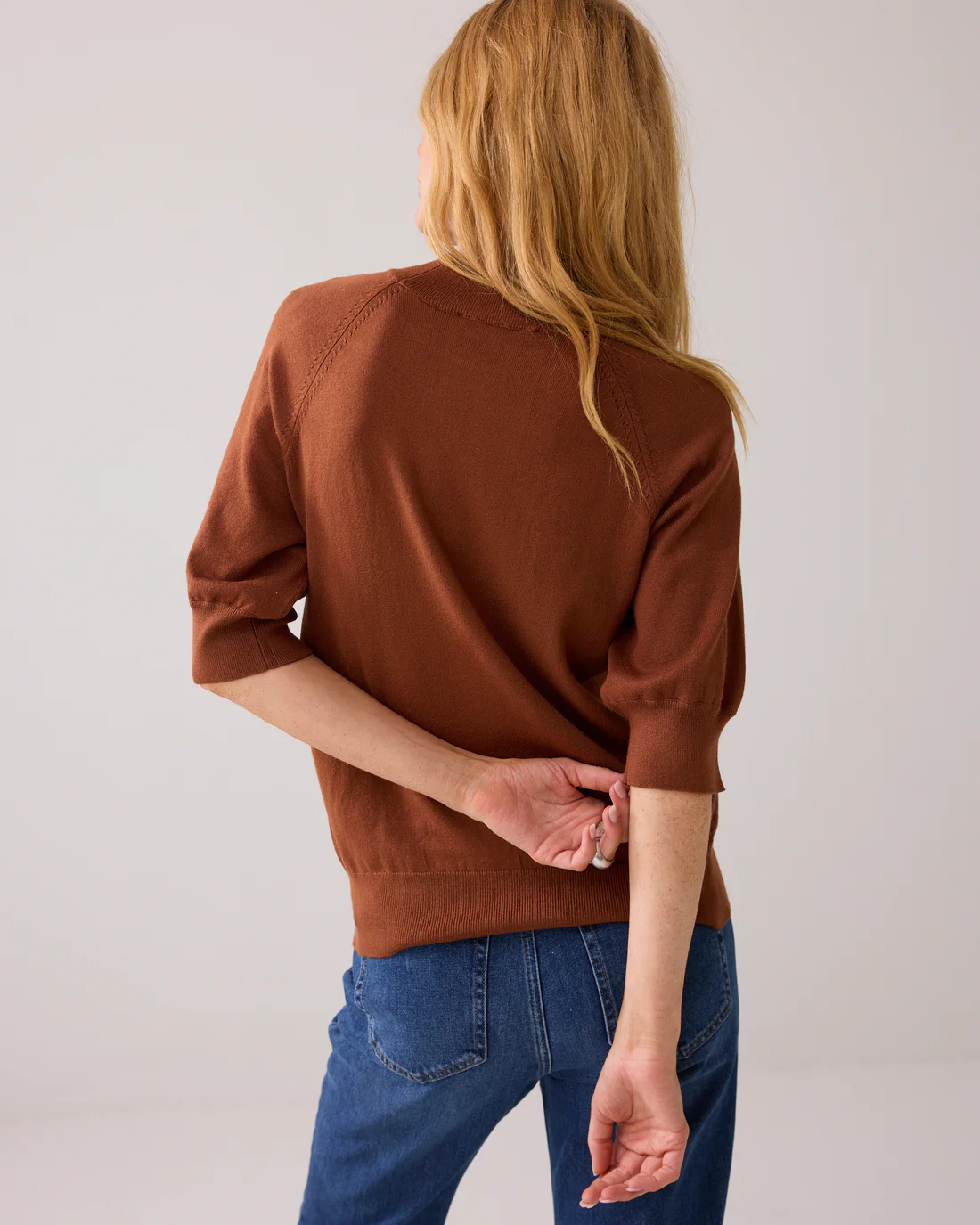7s7935-7980 - Short sleeve sweater soft viscose polyamide knit - Cacao