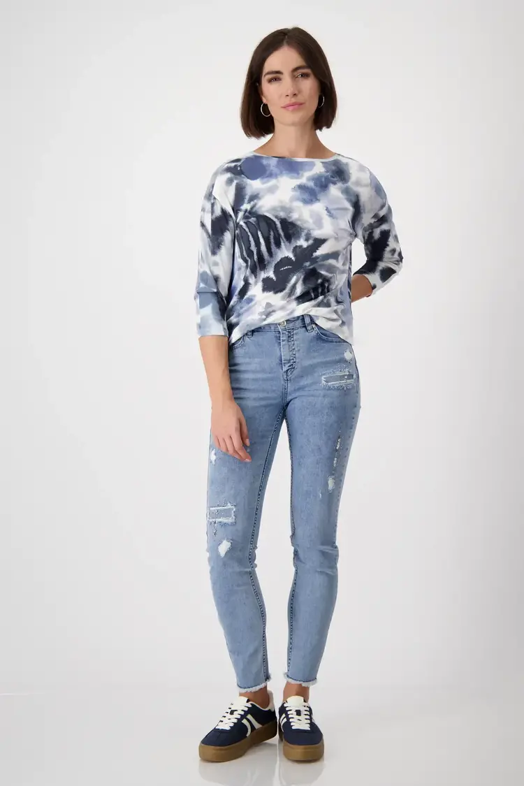 Dit shirt van het merk Monari is gemaakt van:Materiaal 1: 95% viscose;Materiaal 2: 5% elastaan.
