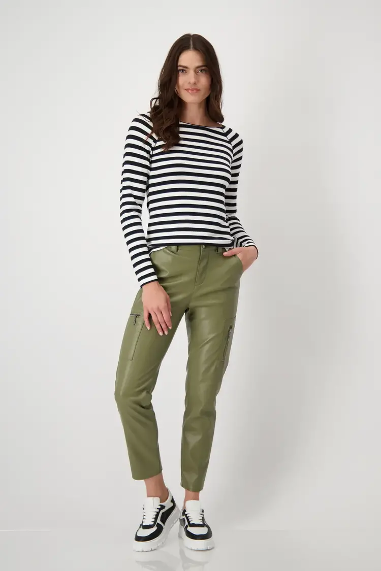 Dit shirt van het merk Monari is gemaakt van:Materiaal 1: 45% viscose;Materiaal 2: 45% modal;Materiaal 3: 10% elastaan.