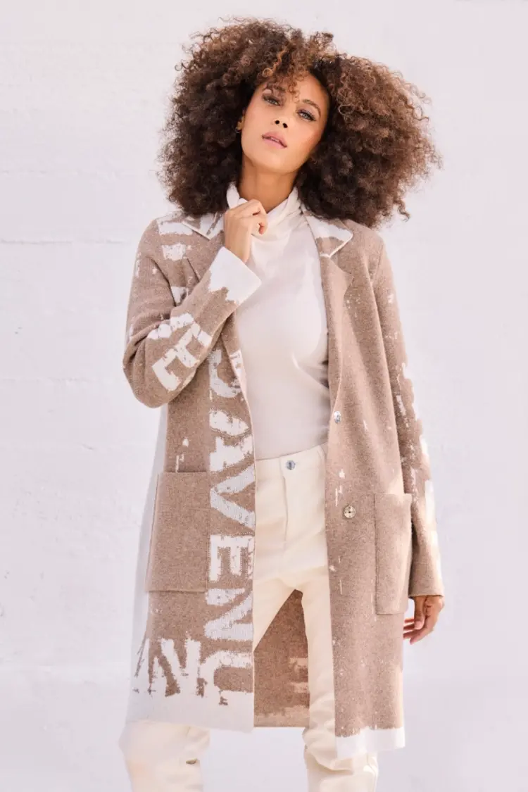 808314 - Gebreide jas met opschrift van strass steentjes - milk chocolate pattern
