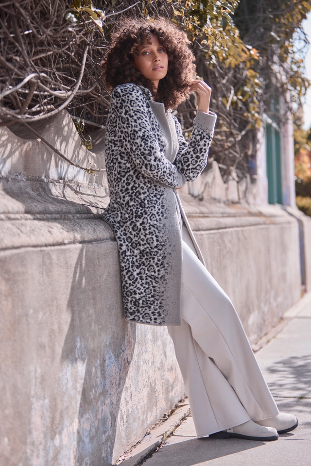 808994 - Strickmantel mit Leopardenmuster - greige gemustert
