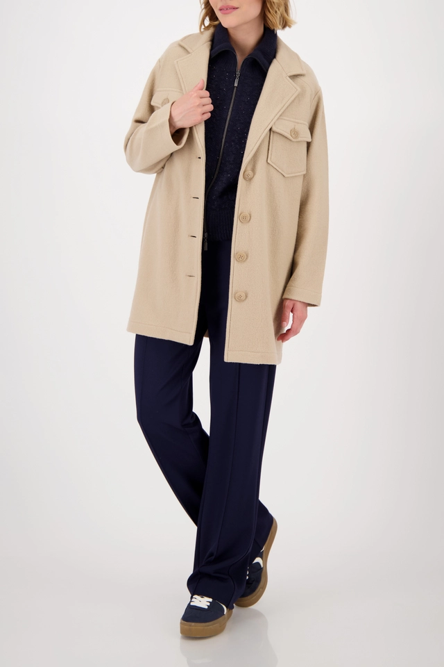 • Elegante jas van het merk Monari, gemaakt van een hoogwaardige wolmix met reverskraag en praktische klepzakken voor een stijlvolle uitstraling.