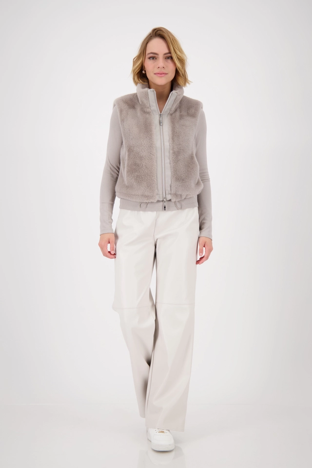 • Dit elegante bontvest van het merk Monari maakt indruk met zijn bijzonder zachte gevoel en stijlvolle leren look op de rits. De hoge opstaande kraag en 2-wegrits zorgen voor comfort en flexibiliteit, terwijl de elastische zoom de pasvorm optimaliseert.