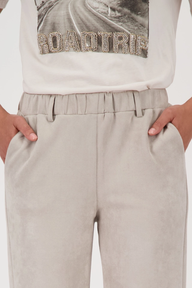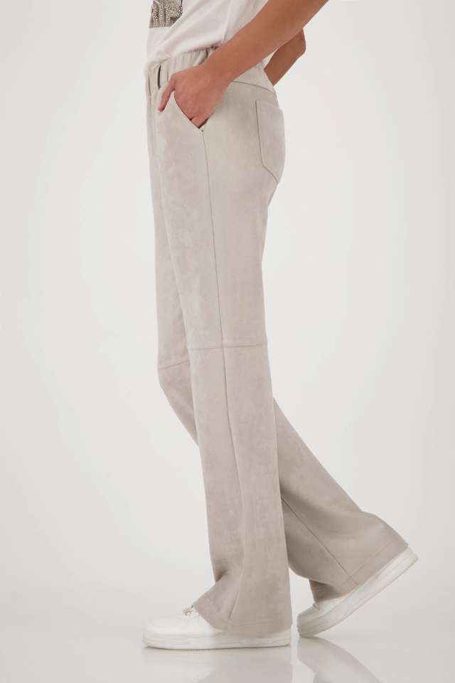 • Deze rechte broek van het merk Monari in zacht leervelours combineert comfort met mode. Het rekbare materiaal zorgt voor comfortabele bewegingsvrijheid, terwijl de elastische zoom een sportief, casual accent toevoegt.