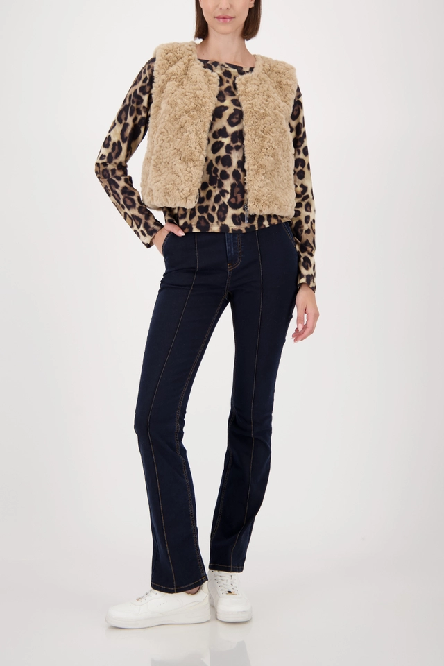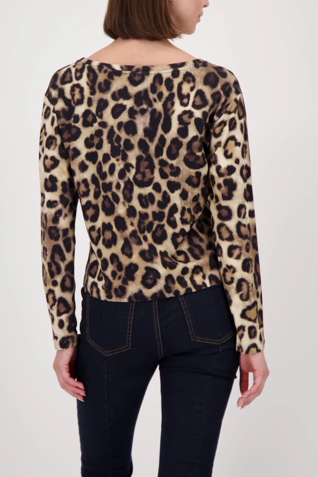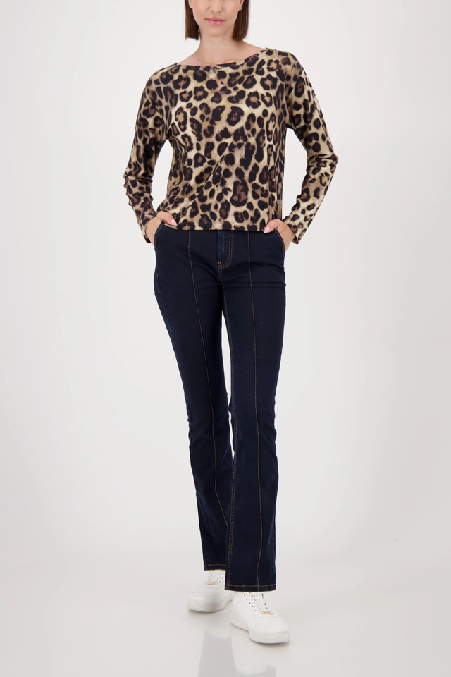 • Stijlvol shirt van het merk Monari met lange mouwen van hoogwaardig katoen met modal, versierd met een elegant luipaardpatroon en een vrouwelijke boothals.