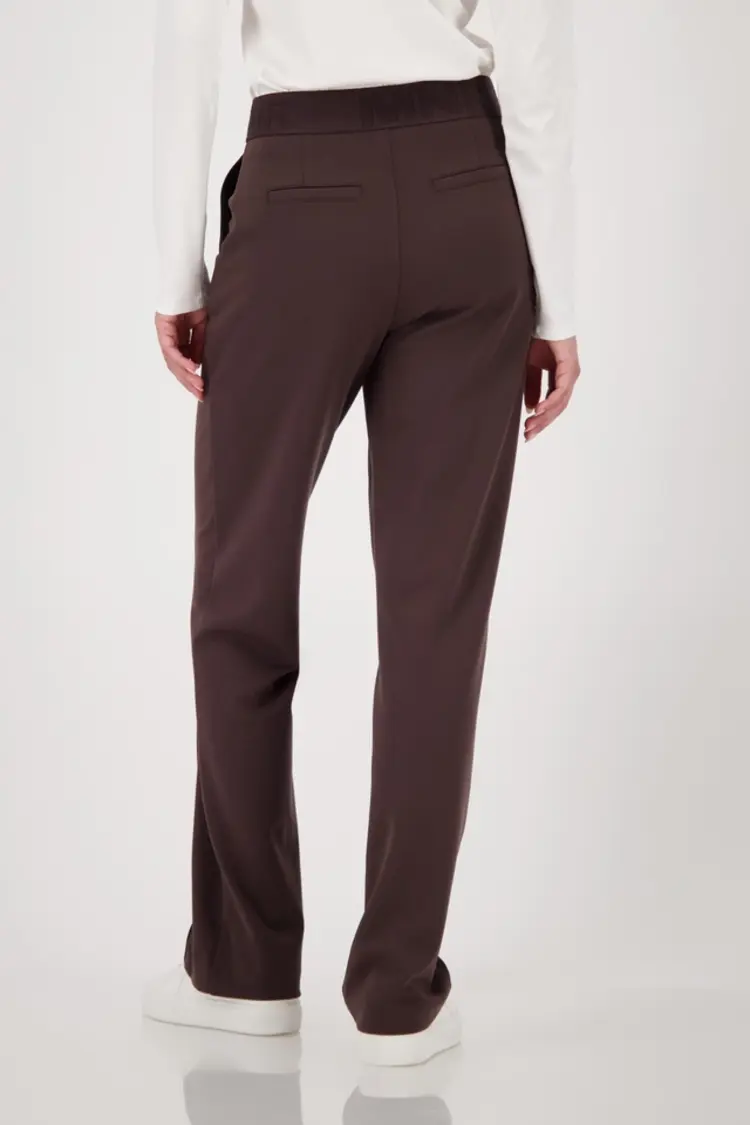 • Deze broek van het merk Monari, gemaakt van een soepel vallende viscose mix is bijzonder comfortabel dankzij het elastische materiaal. Het joggingbroekontwerp en de elastische band met opschrift geven de broek een sportieve look.