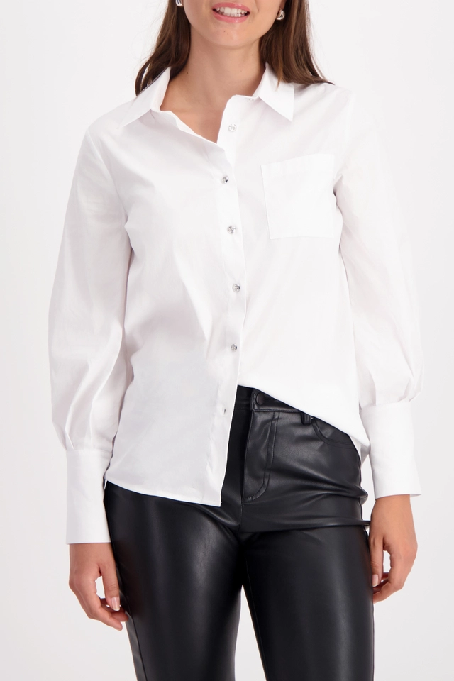 Deze overhemdblouse is gemaakt van:Materiaal 1: 75% katoen;Materiaal 2: 22% polyamide;Materiaal 3: 3% elastaan.