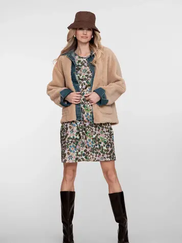 58551-16 - Jacket denim & teddy - camel/denim
