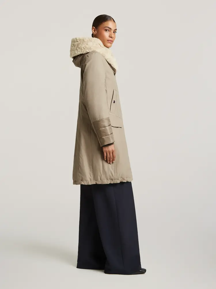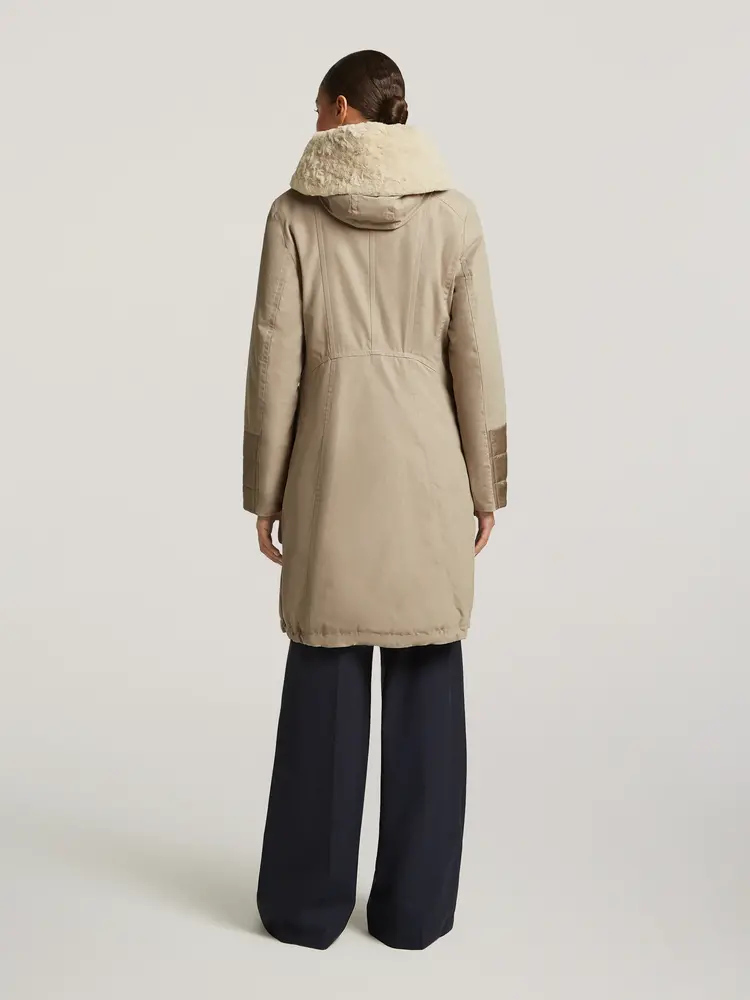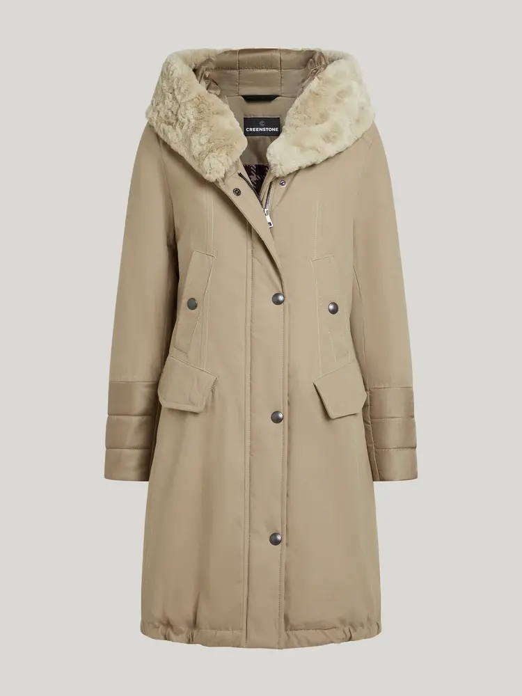 • Deze iconische katoenen parka van Creenstone combineert moeiteloos stijl en comfort dankzij het elegant gevormde silhouet. De gewatteerde boorden in contraststof en sjaalkraag-capuchon met zachte voering geven de jas een luxe uitstraling en extra comfort.