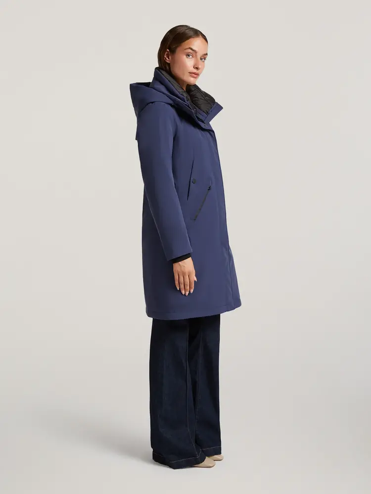 De afneembare binnenkraag en de box-plooi aan de achterzijde geven deze Creenstone jas een verfijnde en vrouwelijke uitstraling. Een iconisch model dat comfort en stijl moeiteloos combineert.