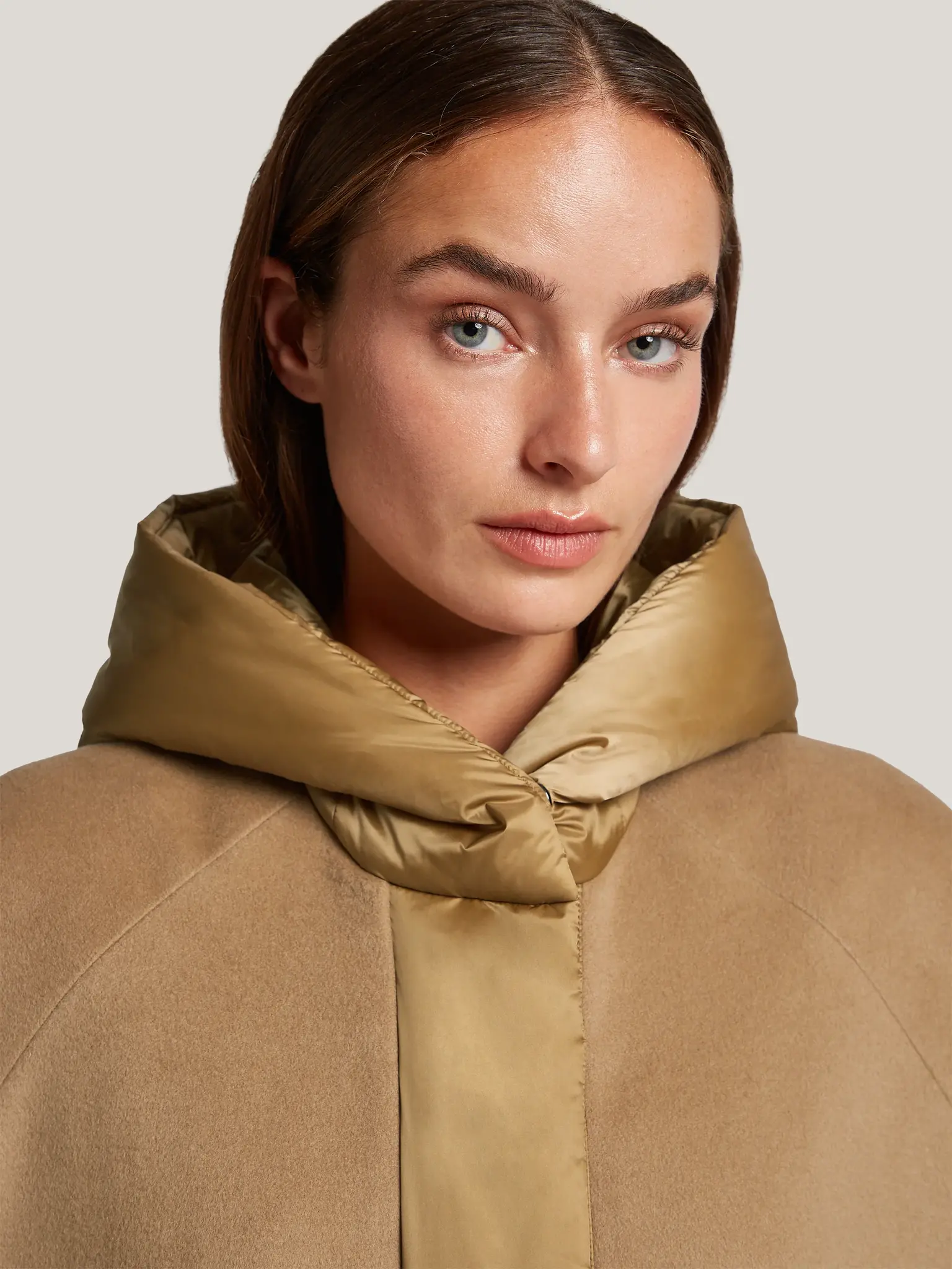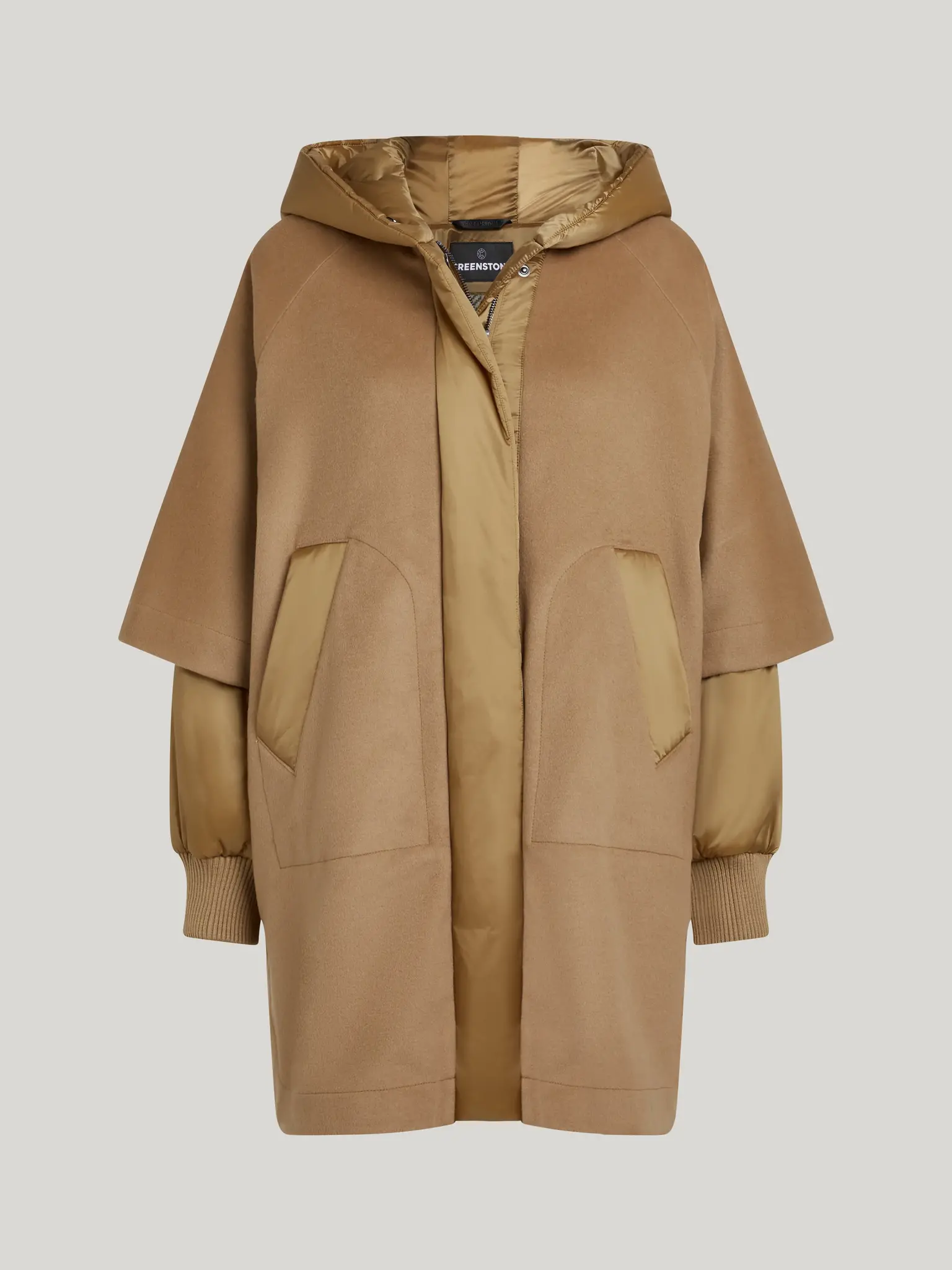 Deze jas van het merk Creenstone is gemaakt van:Materiaal 1: 60% wol;Materiaal 2: 25% polyester;Materiaal 3: 10% andere stoffen;Materiaal 4: 5% kasjmier;Materiaal 5 (Voering): 100% gerecycled polyester.