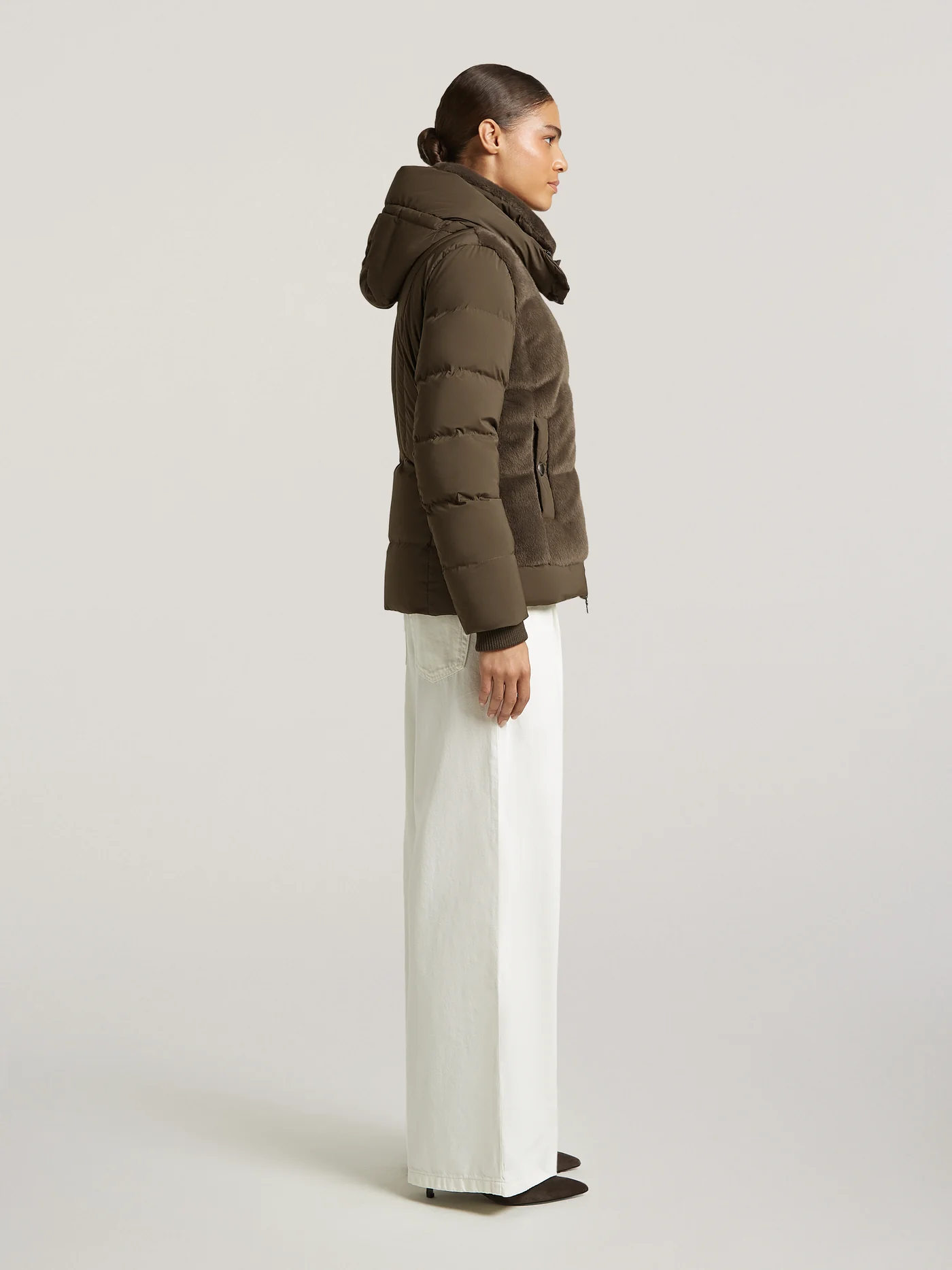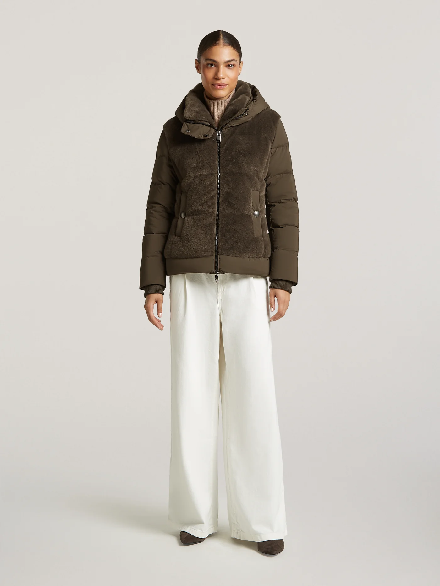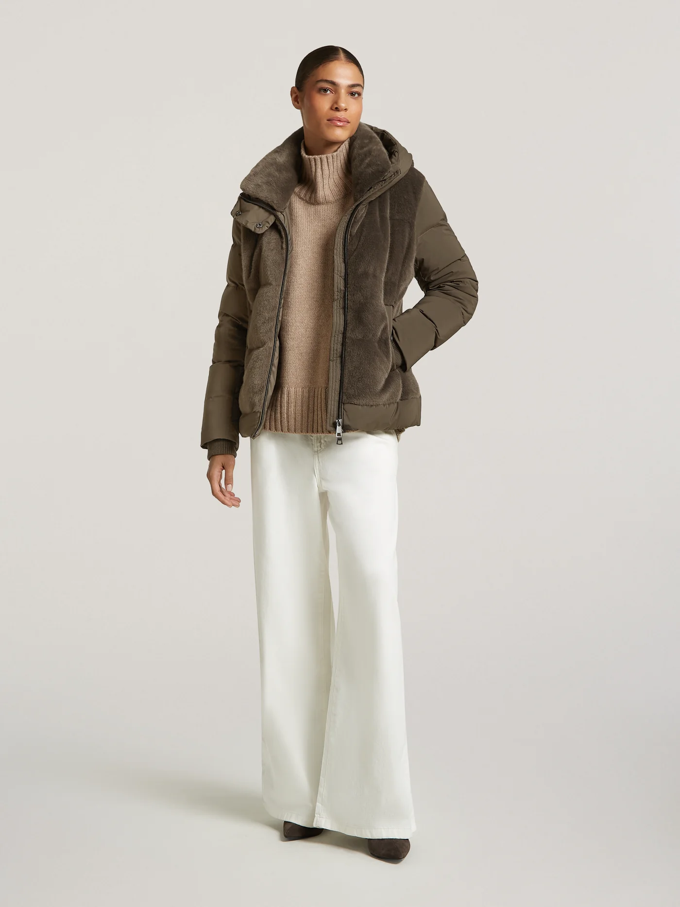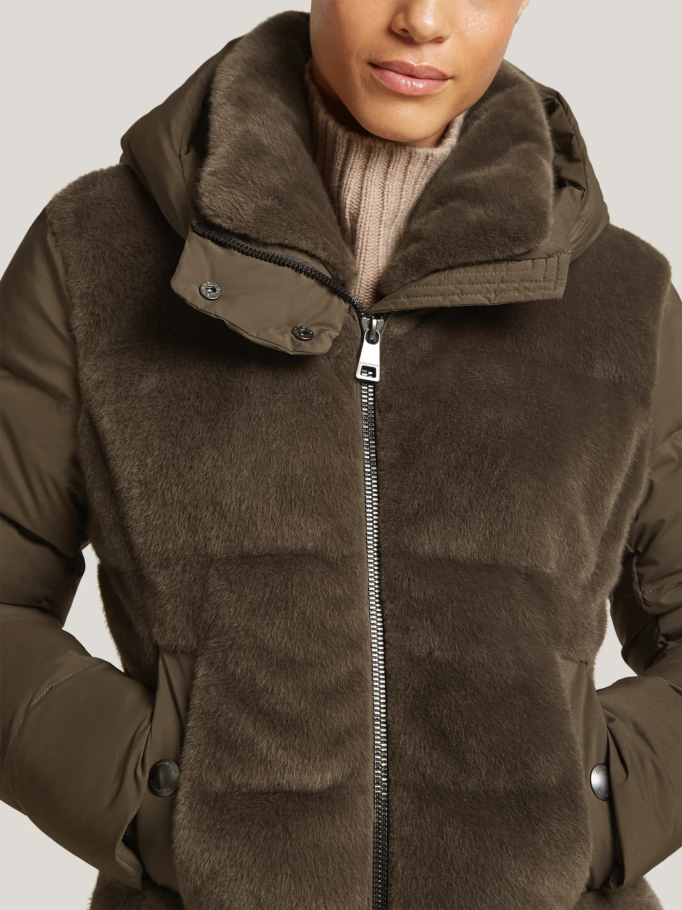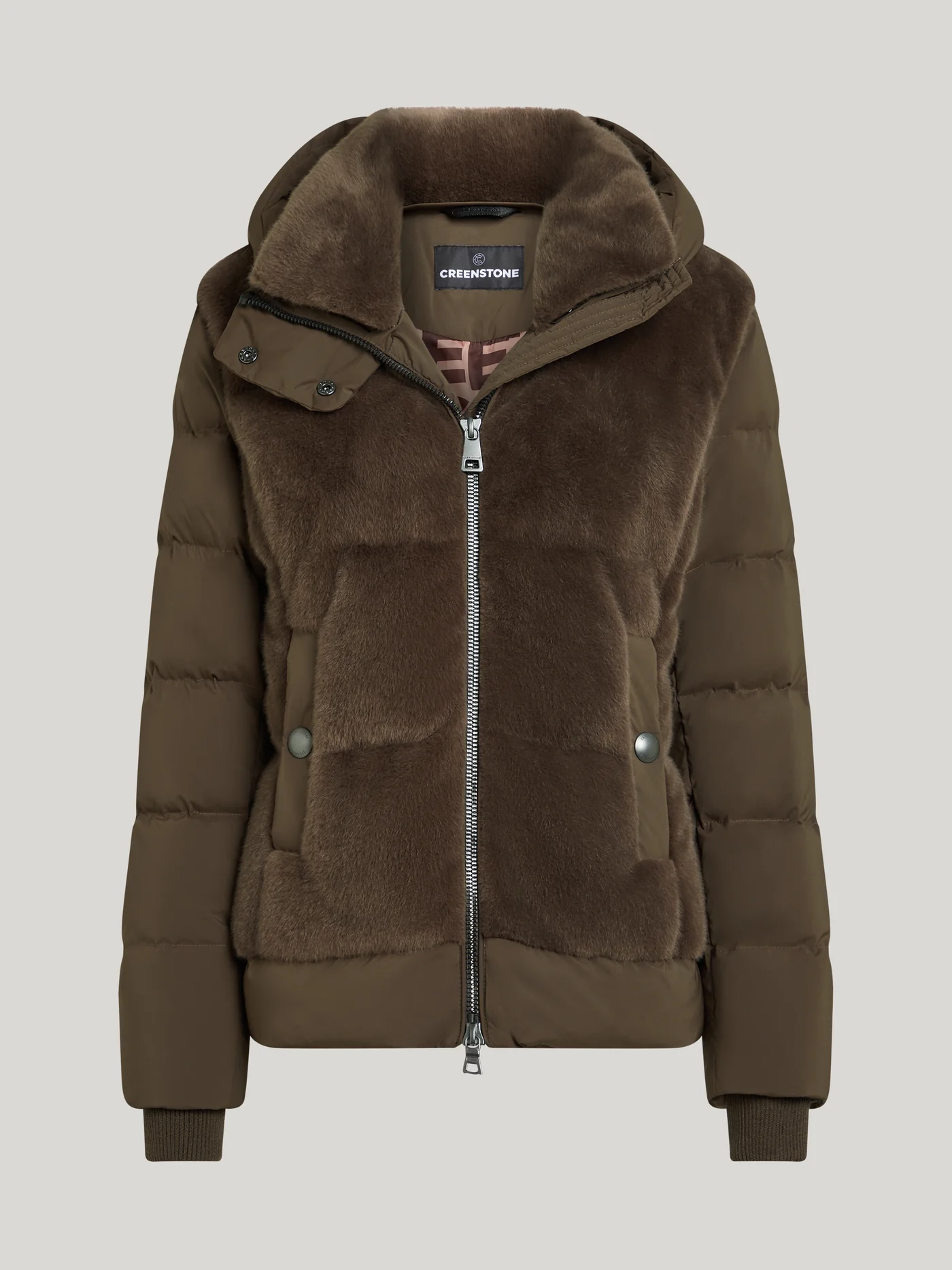 • Deze luxe faux fur puffer van merk Creenstone heeft een stijlvolle twist dankzij de stretch down contraststof. Met verantwoord dons gewatteerd, biedt hij warmte zonder zwaar aan te voelen.
