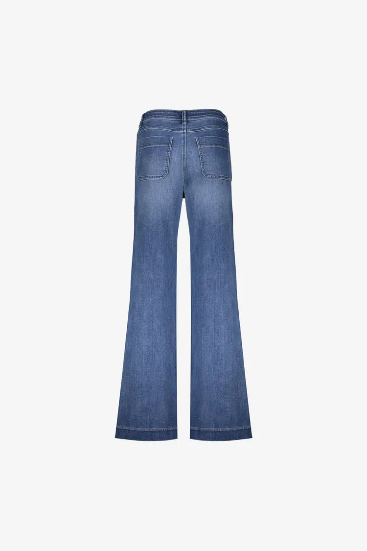 • Denim flared jeans van het merk Geisha. Deze denim jeans is uitgevoerd in katoen blend kwaliteit, waar deze een stonewash afwerking heeft gekregen. Stoer en lekker casual te dragen.