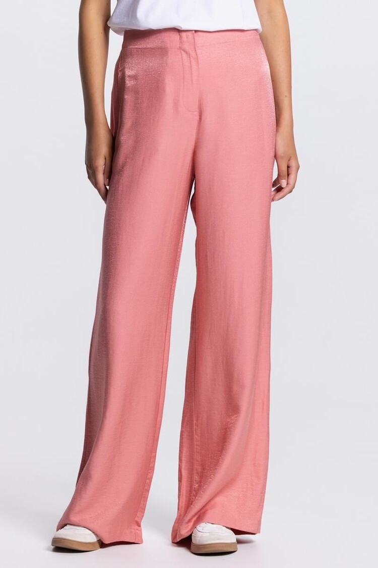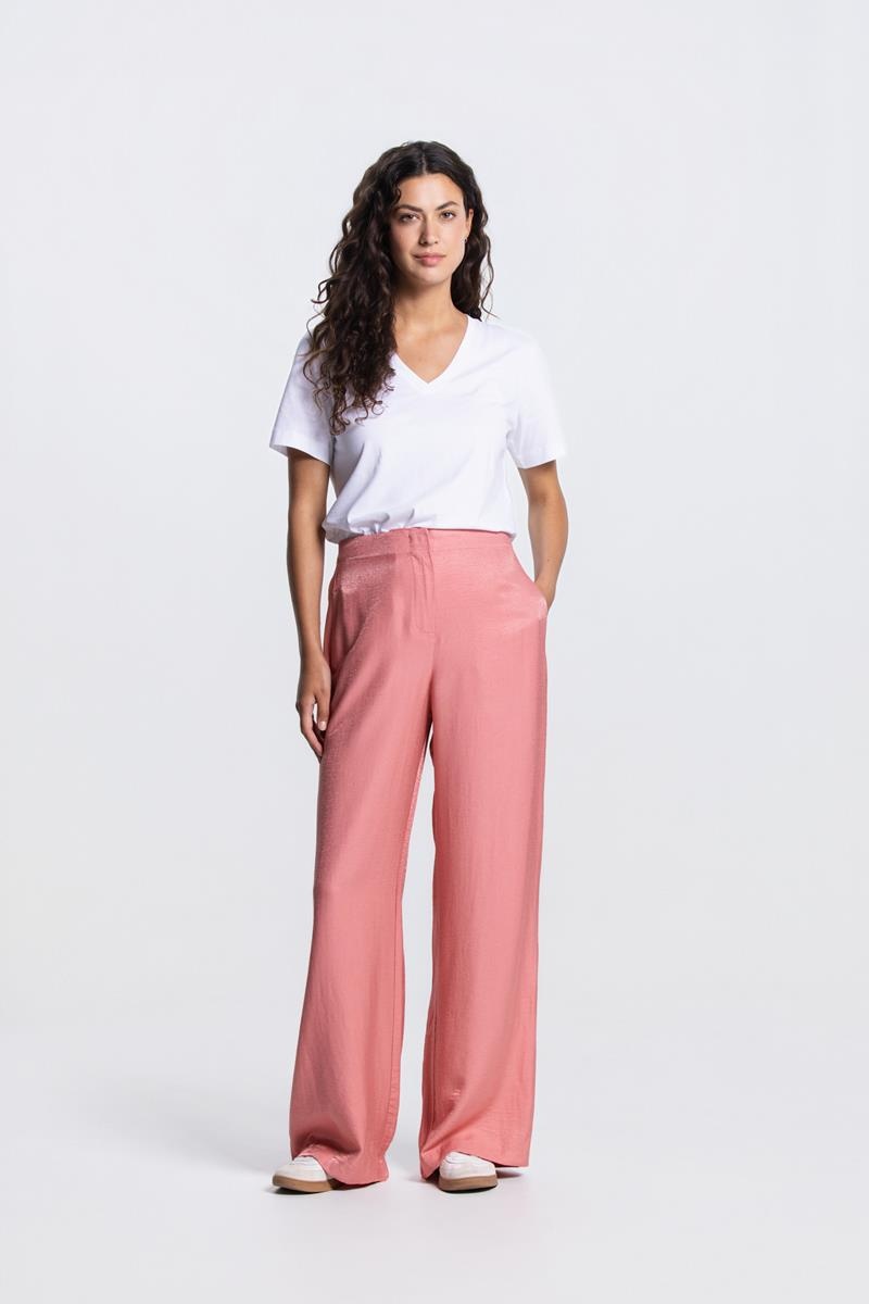 • De Orelie pantalon van het merk Jansen Amsterdam in een blush kleur is een soepel vallende wide leg met insteekzakken, paspelzakken achter en een gulp met elastische achterzijde voor een comfortabele pasvorm.