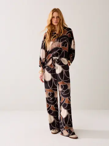 4s2956-12435 - Baggy straight pant Cow printed twill - Multicolour