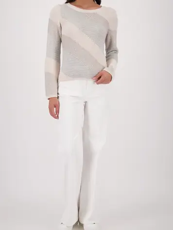 410416 - Strickpullover mit Materialmix - champagne beige