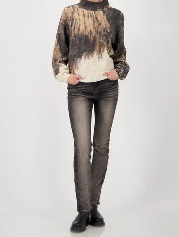809689 - Strickpullover mit Tigermuster - anthra gemustert