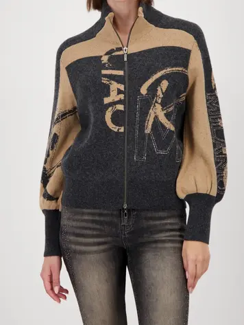 809555 - Strickjacke mit Strasssteinen - anthra melange gemustert