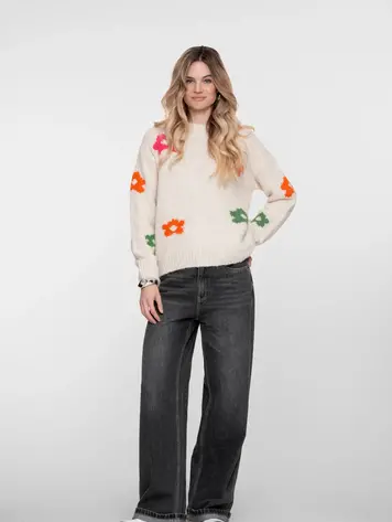 54598-70 - Pullover flowers - off-white/fuchsia/orange/green