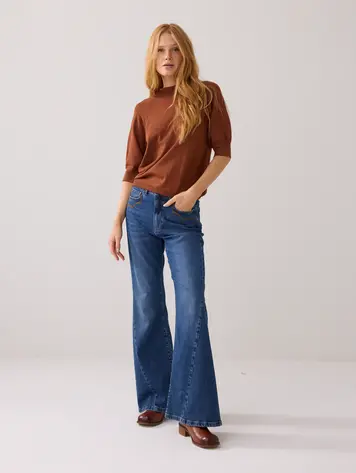 7s7935-7980 - Short sleeve sweater soft viscose polyamide knit - Cacao